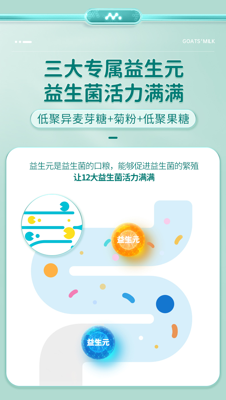 2、3大专属益生元,保障益生菌活力,促进益生菌繁殖