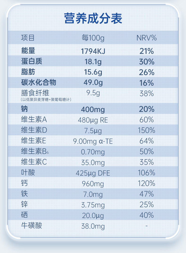 3、无蔗糖,含丰富膳食纤维,让身体轻负担