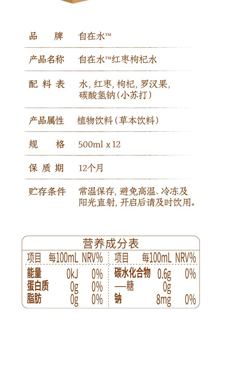 元气森林 元气自在水-红枣枸杞500ml*15(0糖0脂)