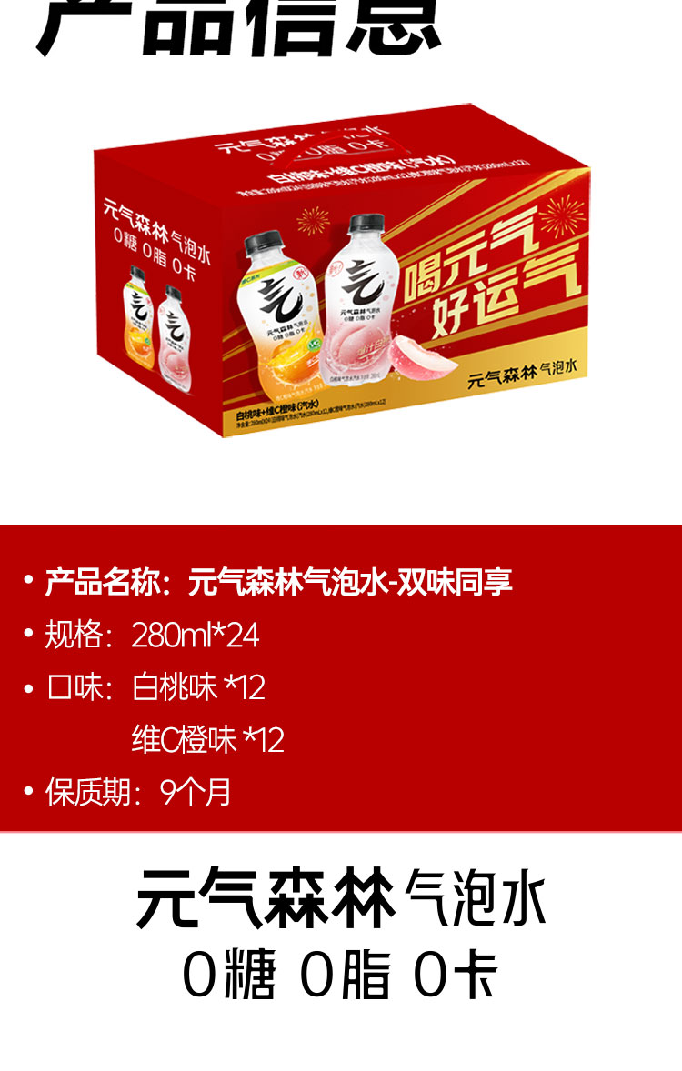 元气森林 双味同享280ml*24(0糖0脂0卡)