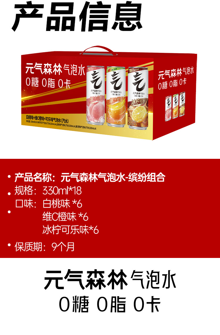 元气森林 缤纷组合330ml*18(0糖0脂0卡)