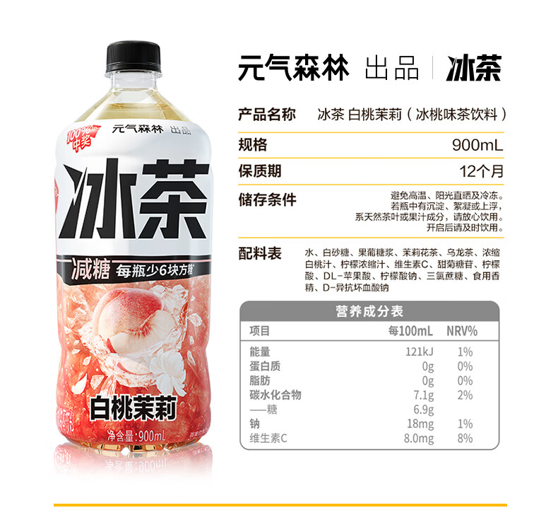 元气森林 冰茶-白桃茉莉900ml*12