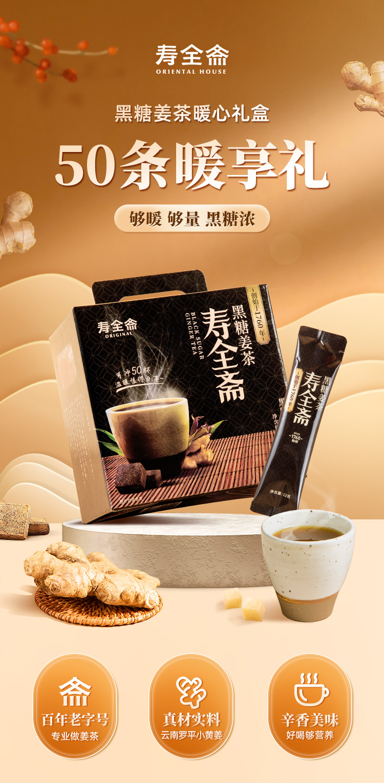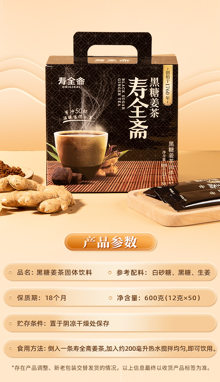 寿全斋 黑糖大立袋 12g*50条/盒