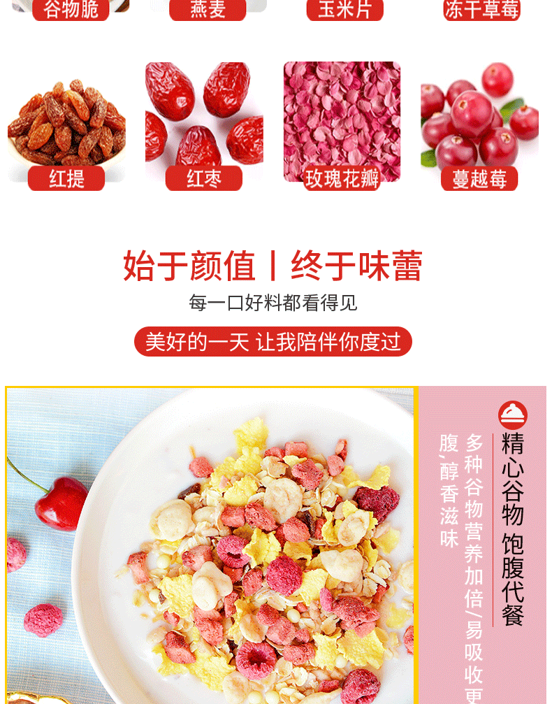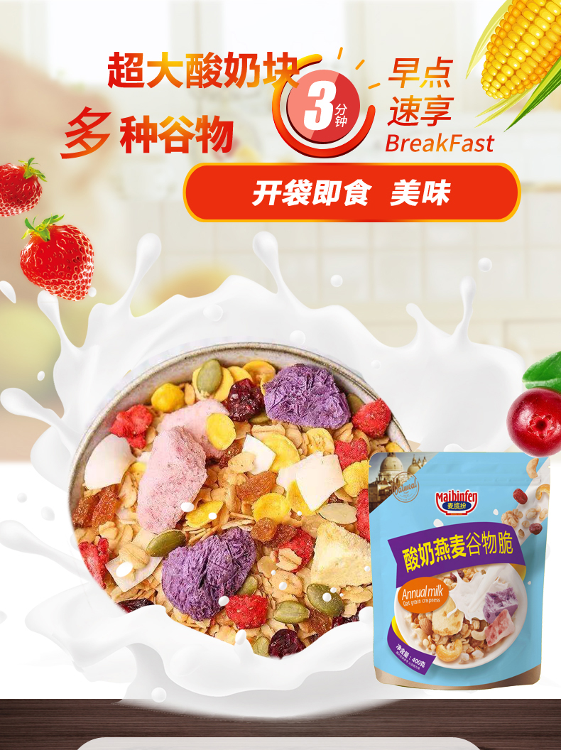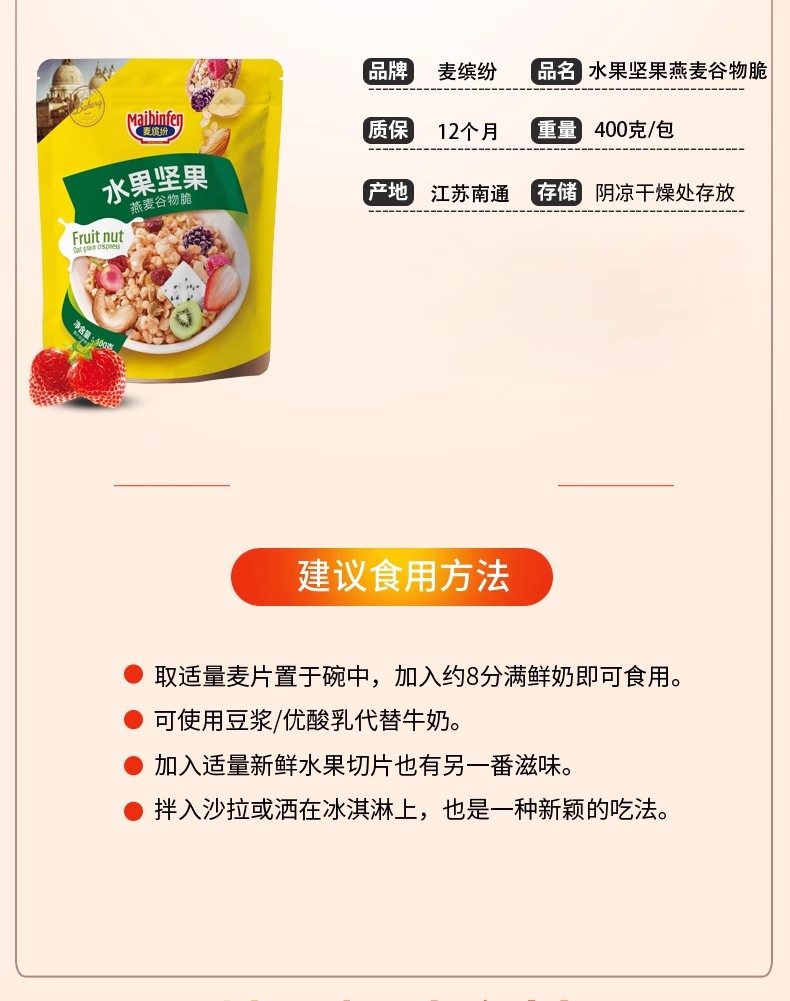 麦缤纷水果坚果谷物脆/酸奶谷物脆/玫瑰草莓谷物脆400g