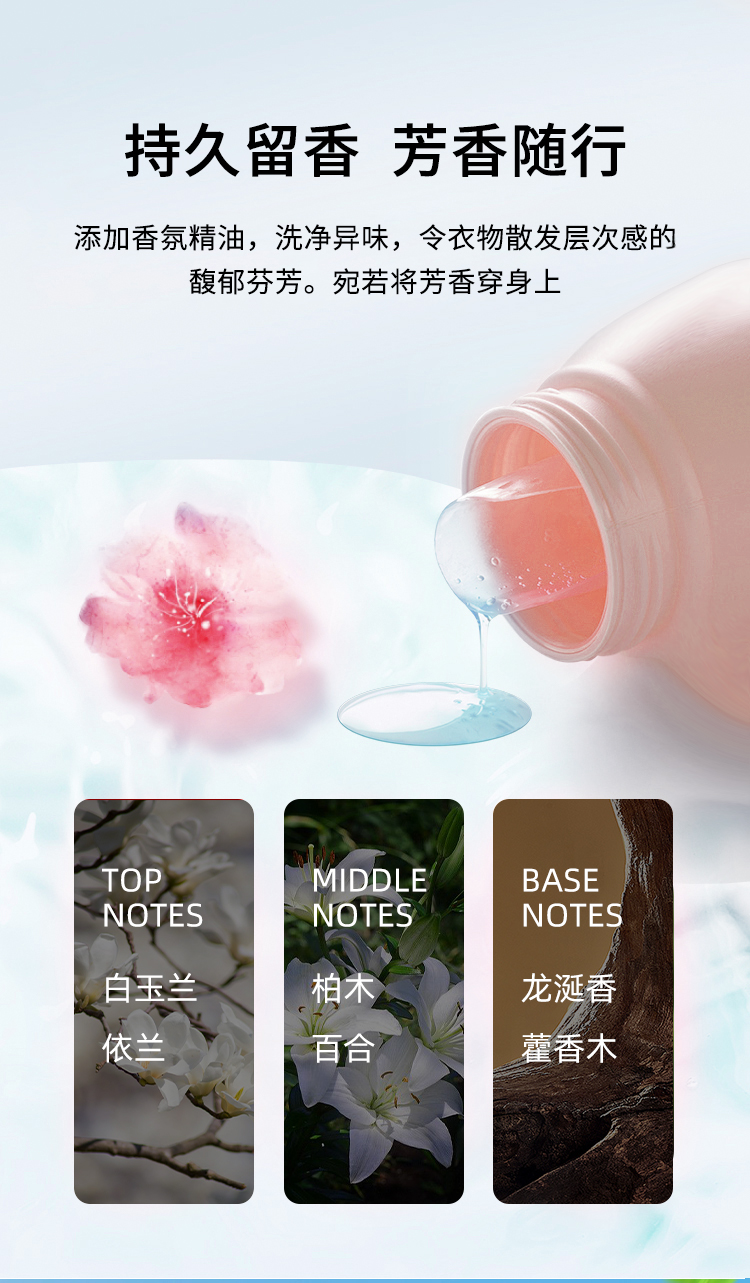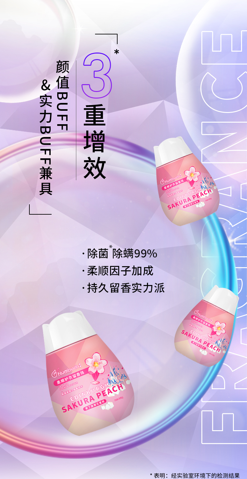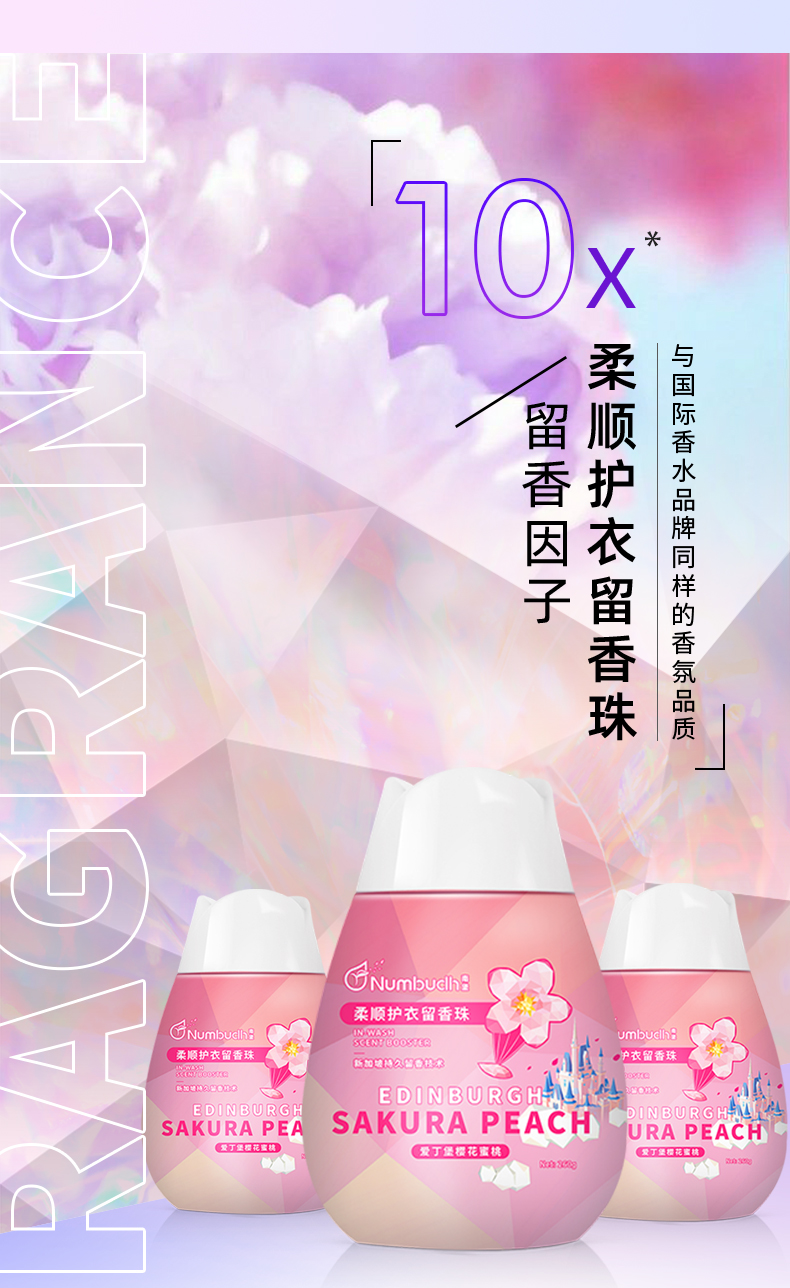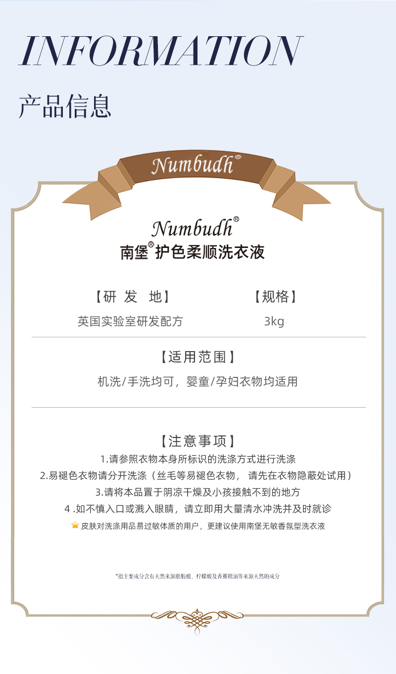 Numbudh南堡护色柔顺洗衣液3kg+南堡护衣留香珠 爱丁堡樱花蜜桃260g