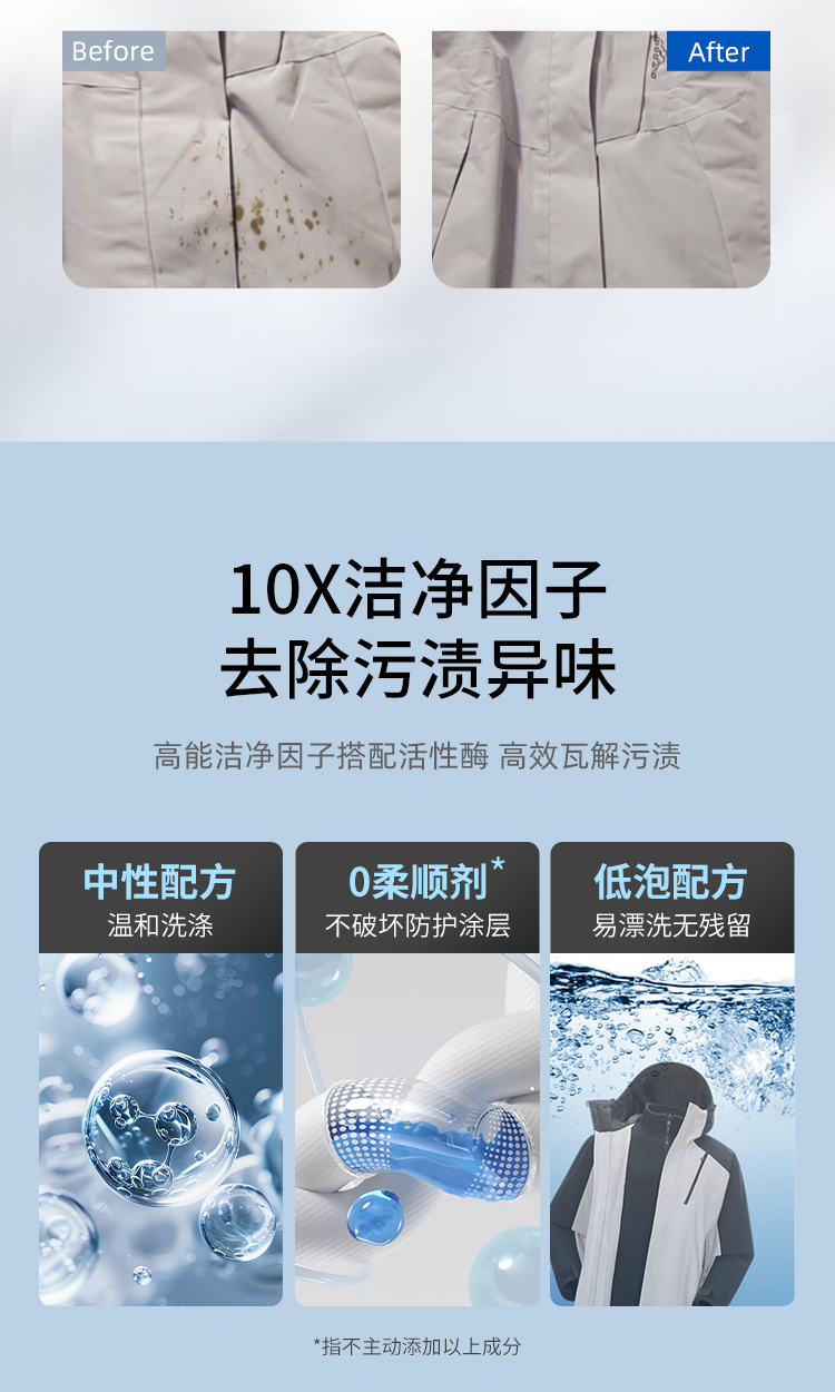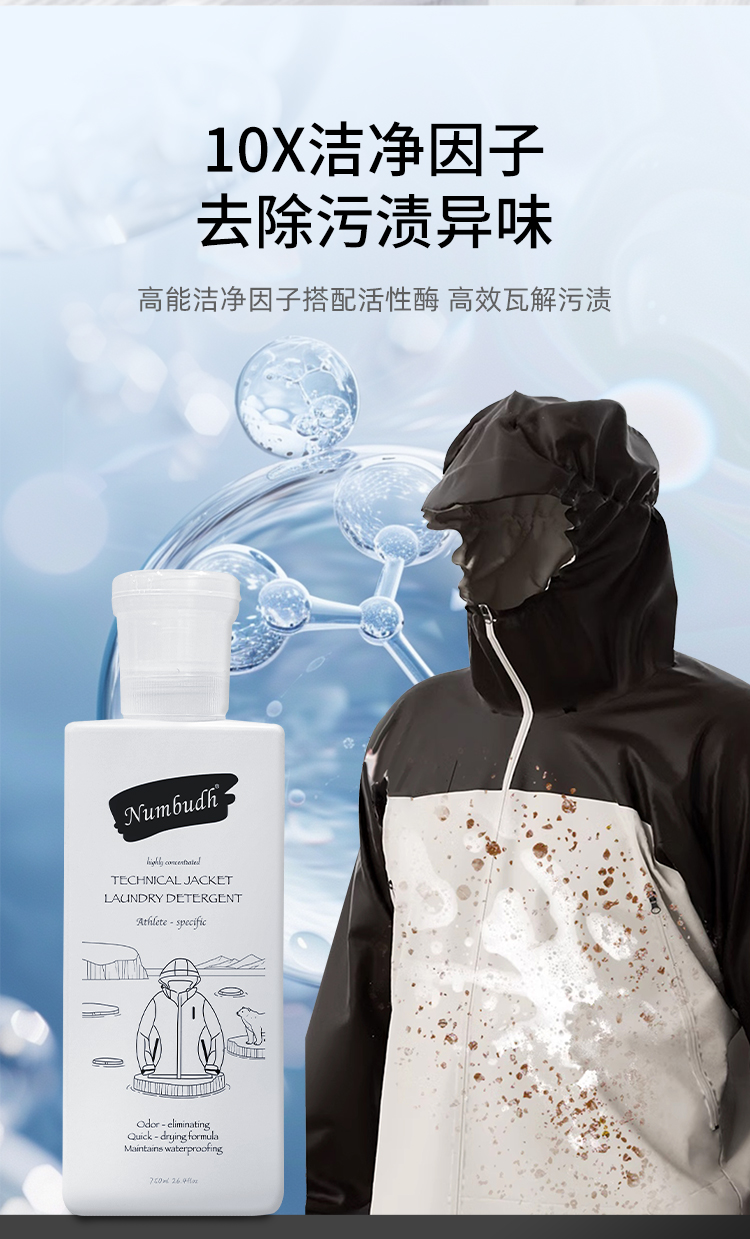南堡冲锋衣专用洗衣液750ml +南堡Numbudh免洗便捷去渍剂100ml(重油渍克星)
