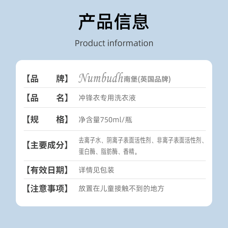 • 南堡冲锋衣专用洗衣液750ml +南堡Numbudh免洗便捷去渍剂100ml(重油渍克星)