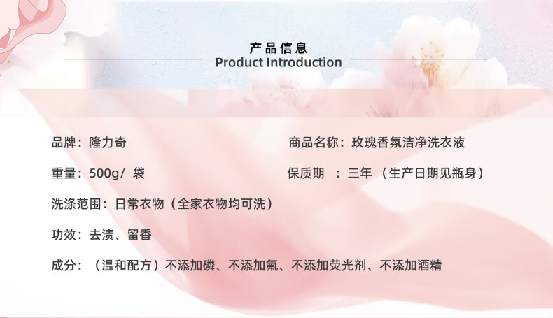 名称:隆力奇玫瑰香氛洁净洗衣液500g