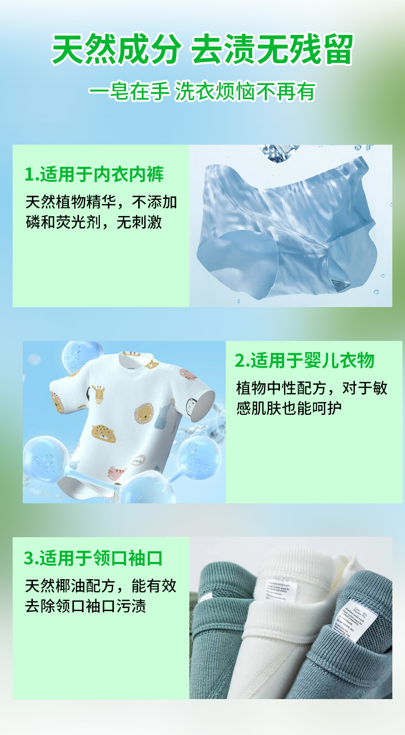 1.蕴含洁净成分,强劲洁净力,有效去除衣物上顽固污溃。