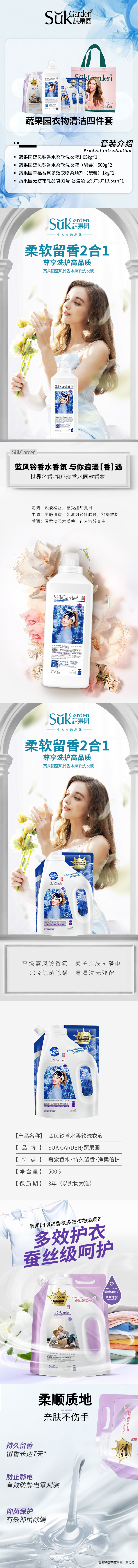 蔬果园蓝风铃香水柔软洗衣液(袋装)500g*2