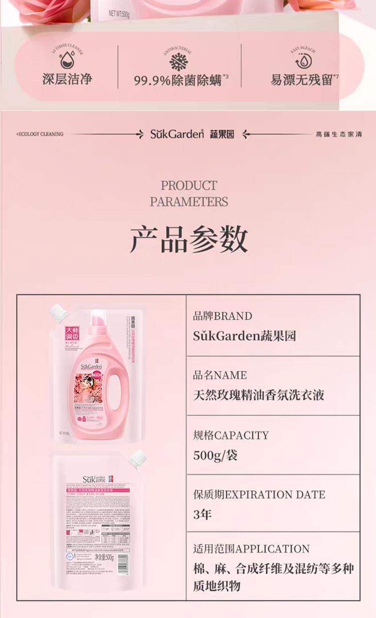 蔬果园天然玫瑰精油香氛洗衣液(袋装)500g*1