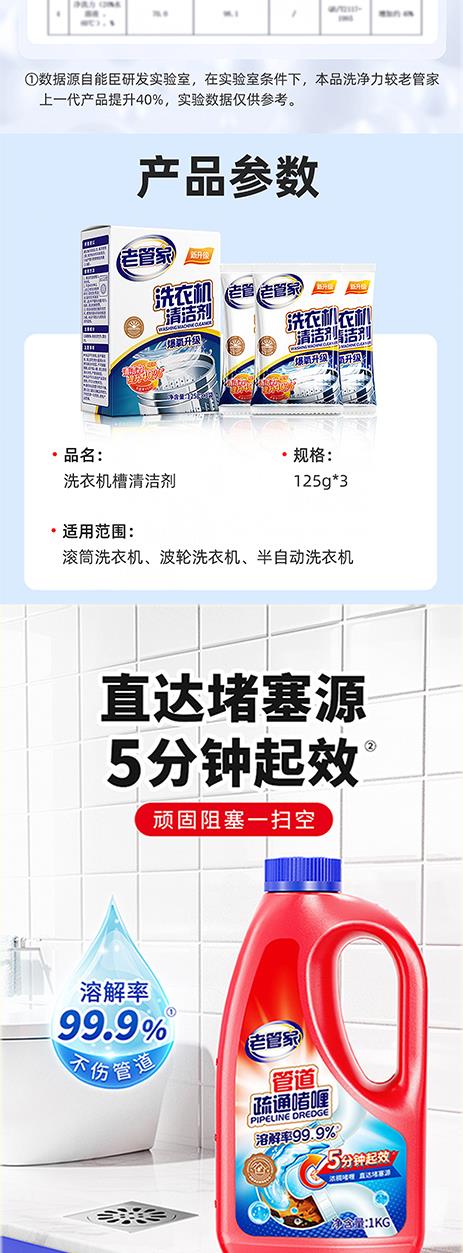 老管家洗衣机槽清洁剂125g*3