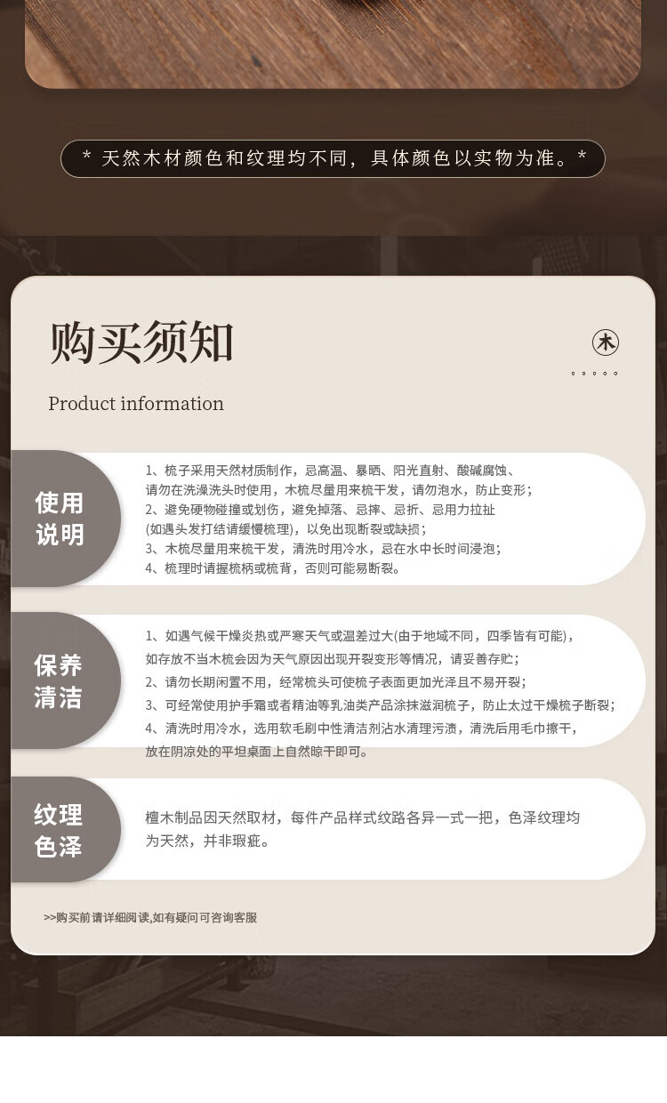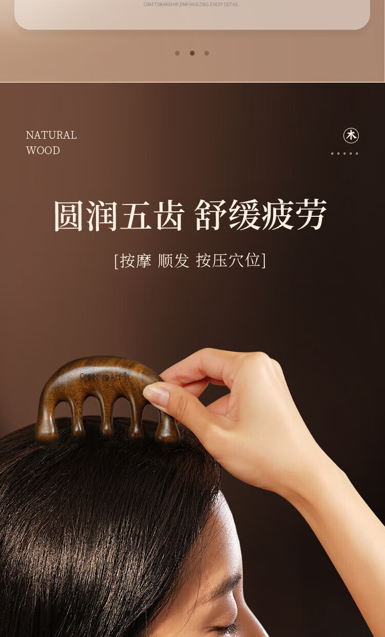 Creative Art-黑金檀木梳-A6202-无柄款+绿檀木牛角梳+礼盒