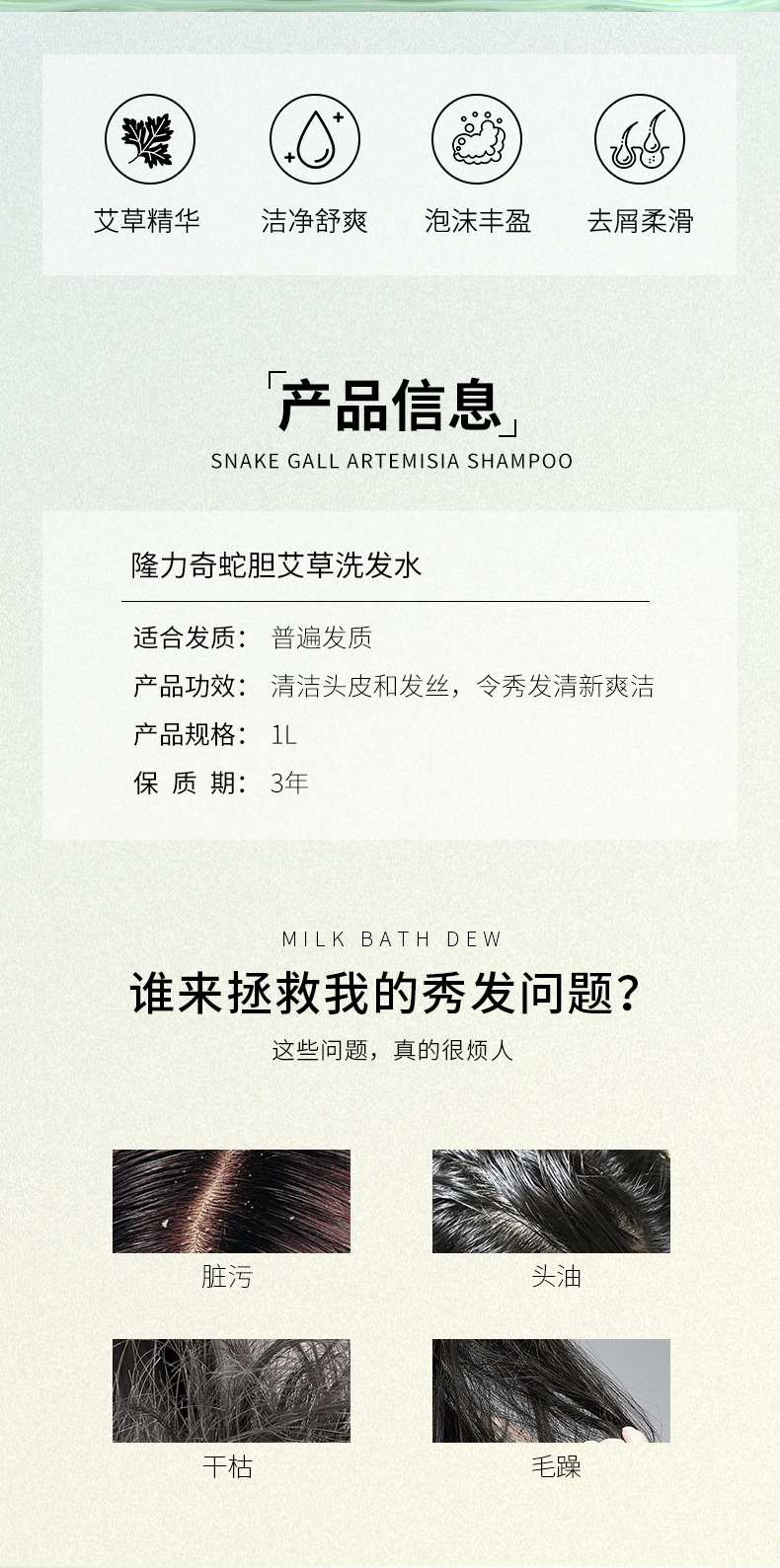 1.蛇胆艾草精华:双重草本精粹抑制头屑,根源清洁控油;