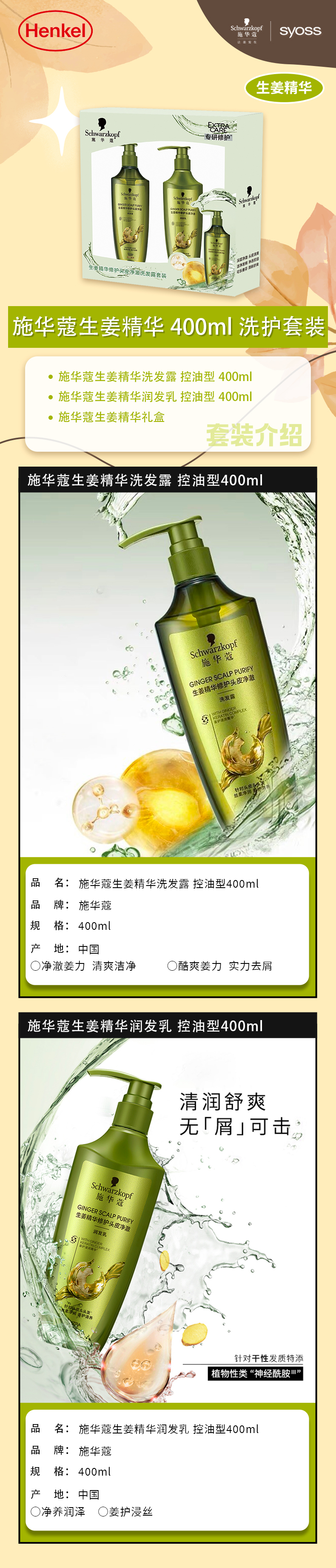 施华蔻生姜精华400ml洗护套装