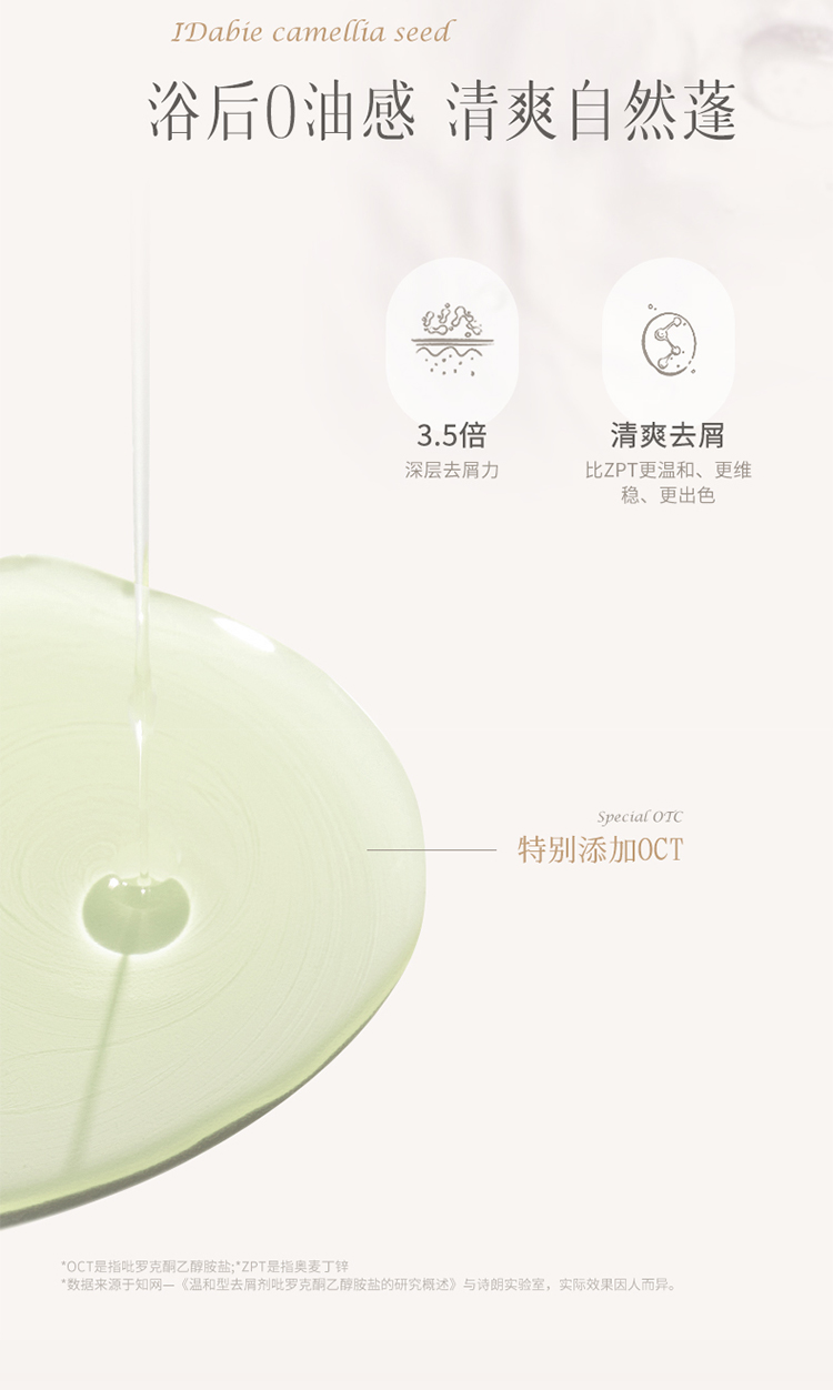 去屑控油,松软净爽,添加茶籽提取物,油腻多屑、暗哑扁塌发质适用