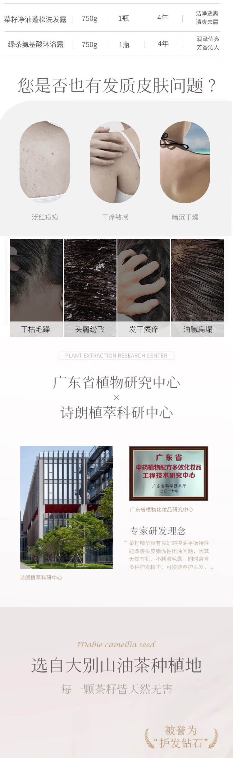 诗朗【净油蓬松】洗沐组合 茶籽洗发+绿茶沐浴 500g*2 SLTZ1000G006