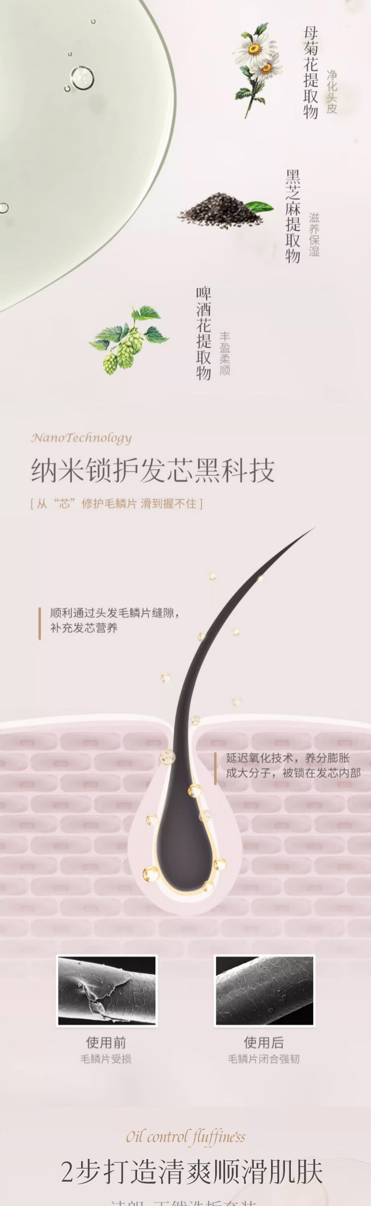 去屑控油,松软净爽,添加茶籽提取物,油腻多屑、暗哑扁塌发质适用