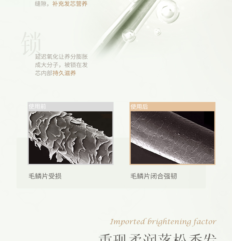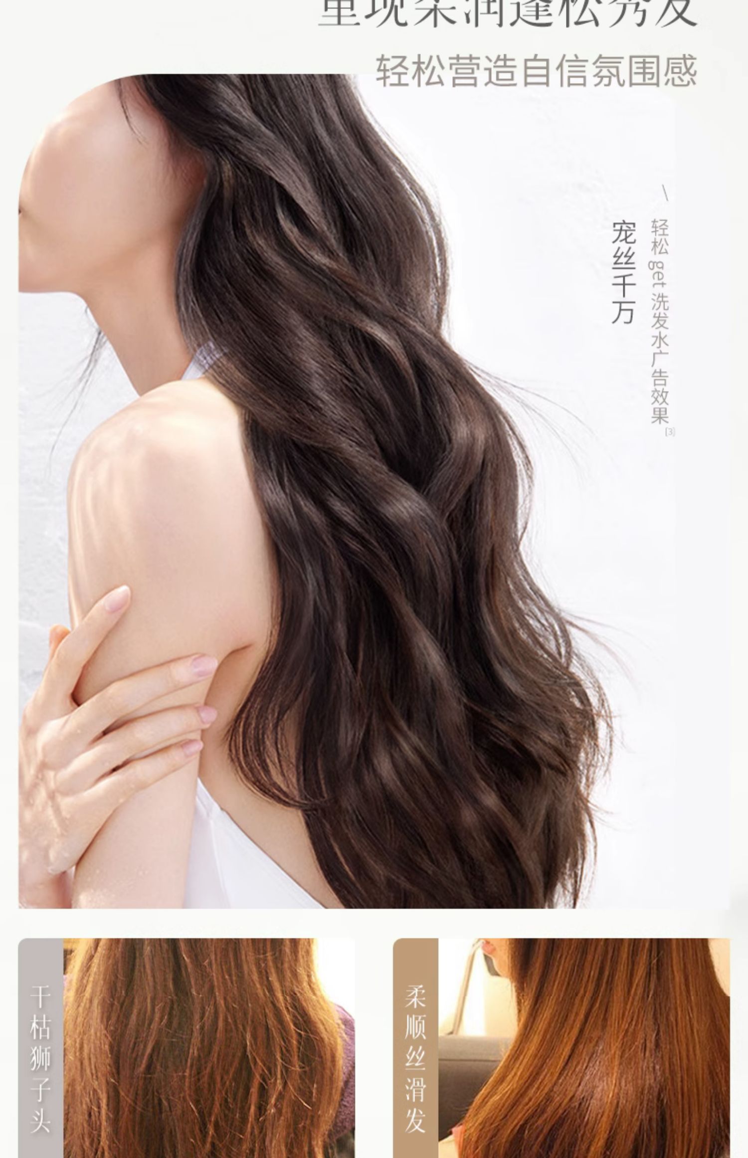 蚕丝洗发露中的蚕丝蛋白成分可以平滑发丝表面,减少毛躁和打结,使头发更加顺滑柔顺,容易梳理和造型。