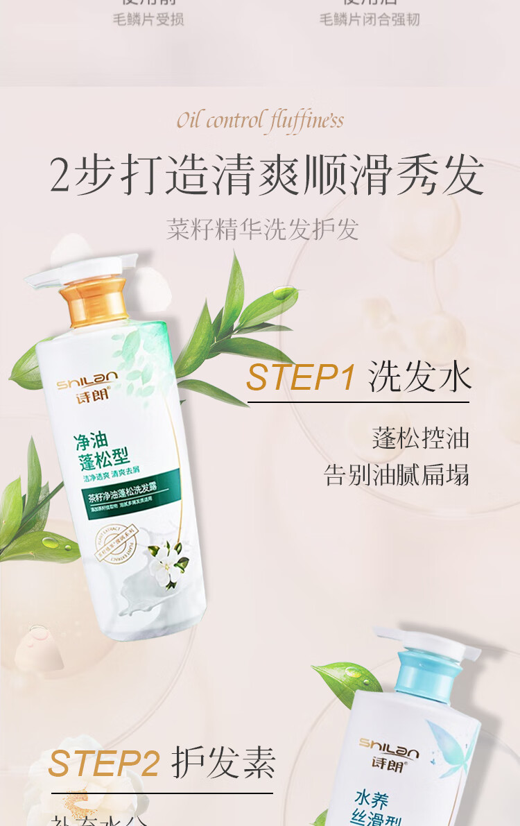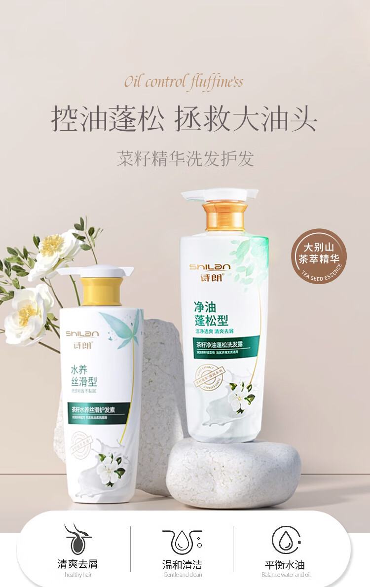 诗朗【茶籽精华】洗护组合 茶籽洗发+茶籽护发 750g*2 SL23