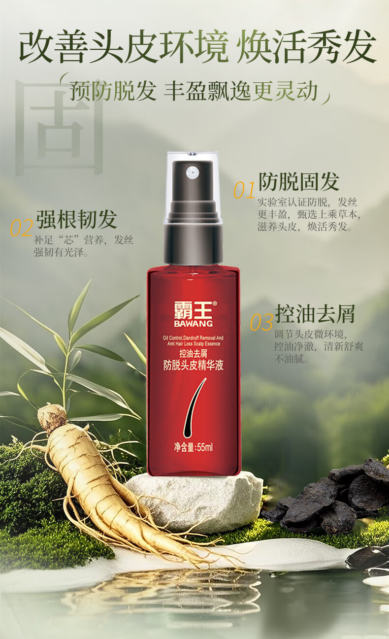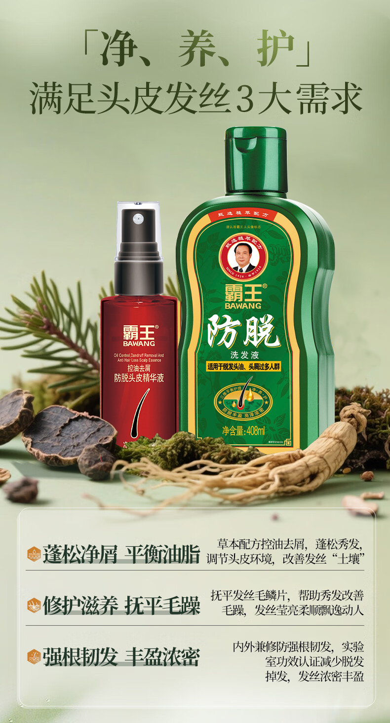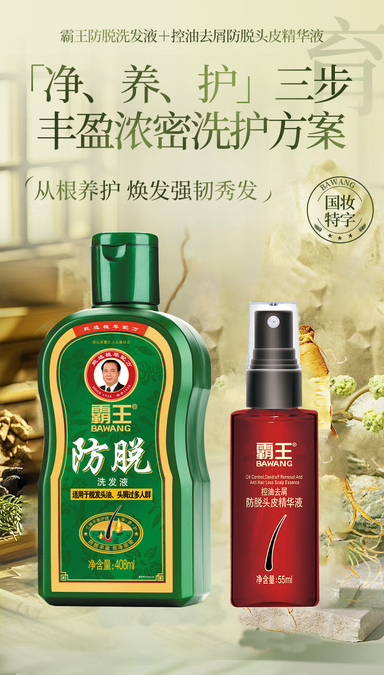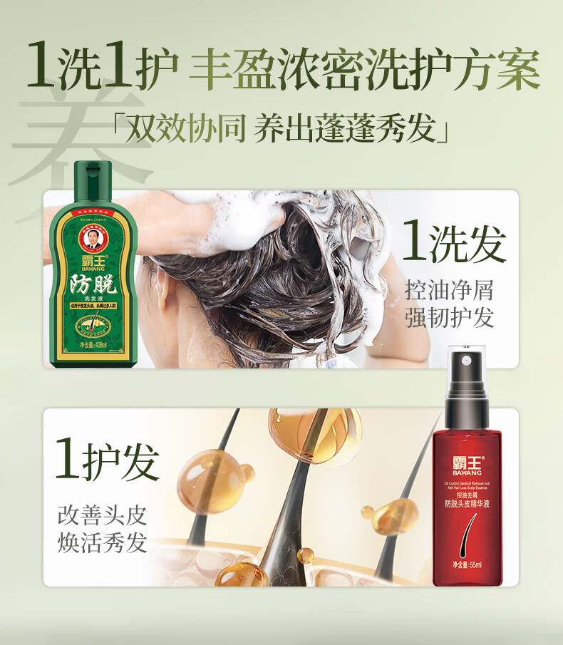 380ml霸王防脱洗发液+55ml霸王控油去屑防脱头皮精华液