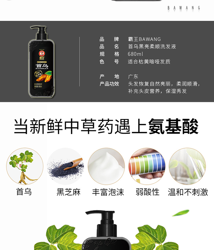 • 霸王氨基酸洗发液 首乌黑亮柔顺680ml 10101021652