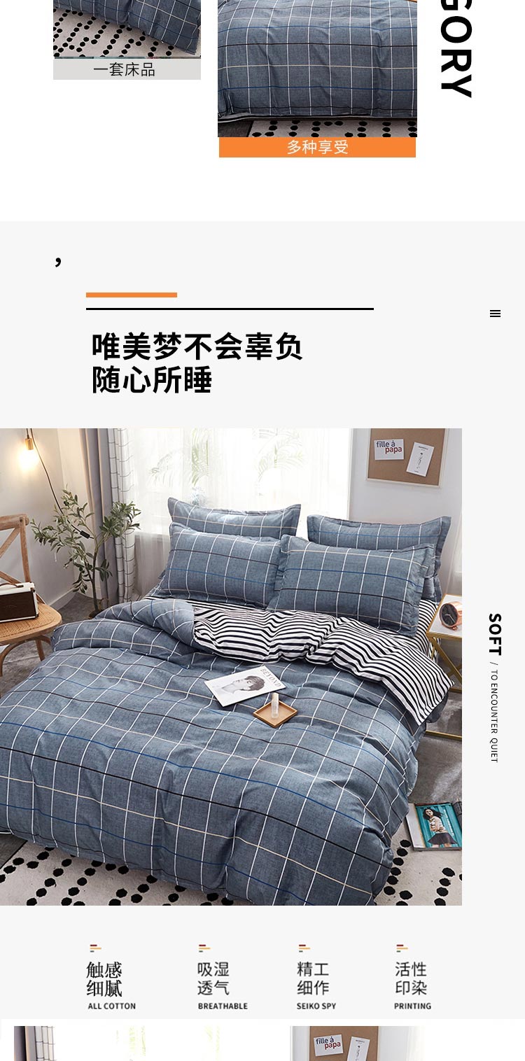 罗曼罗兰芦荟棉四件套 简约时尚