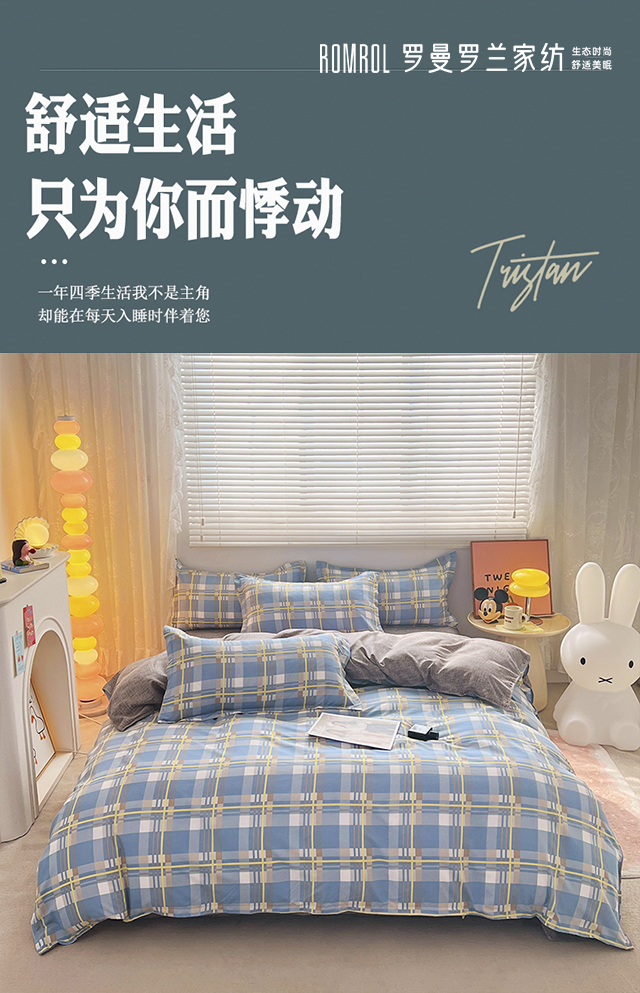 罗曼罗兰芦荟棉四件套 英伦风尚