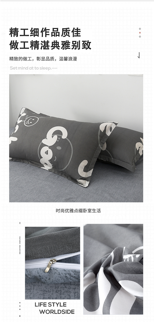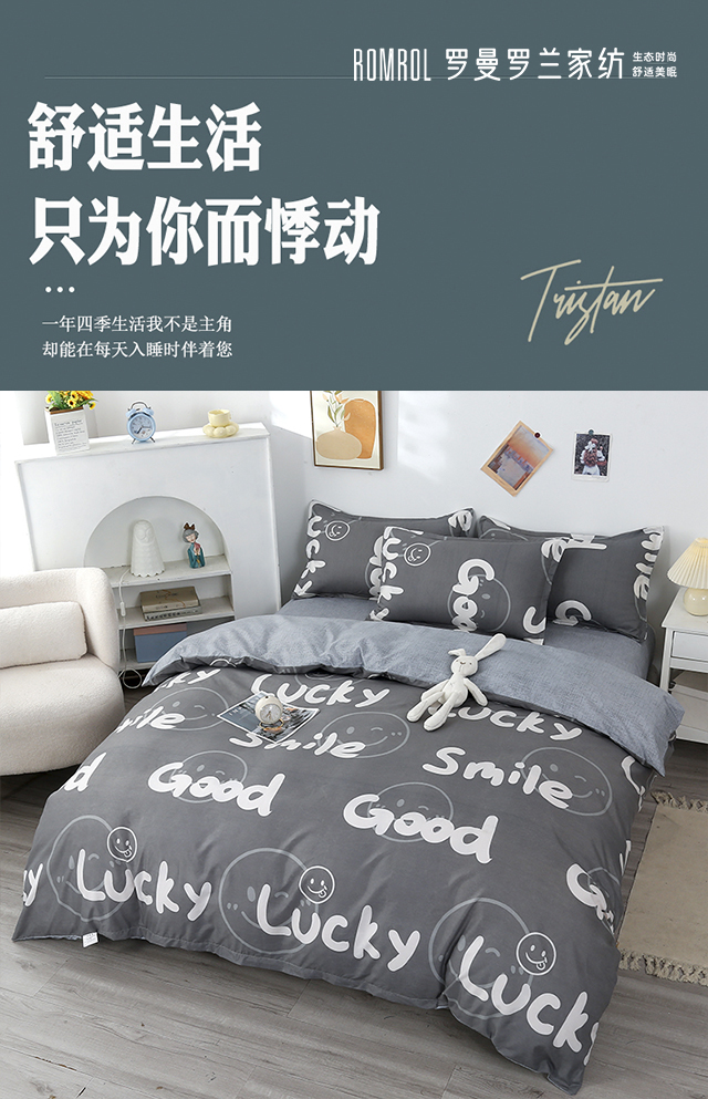 罗曼罗兰芦荟棉四件套 小幸运-灰