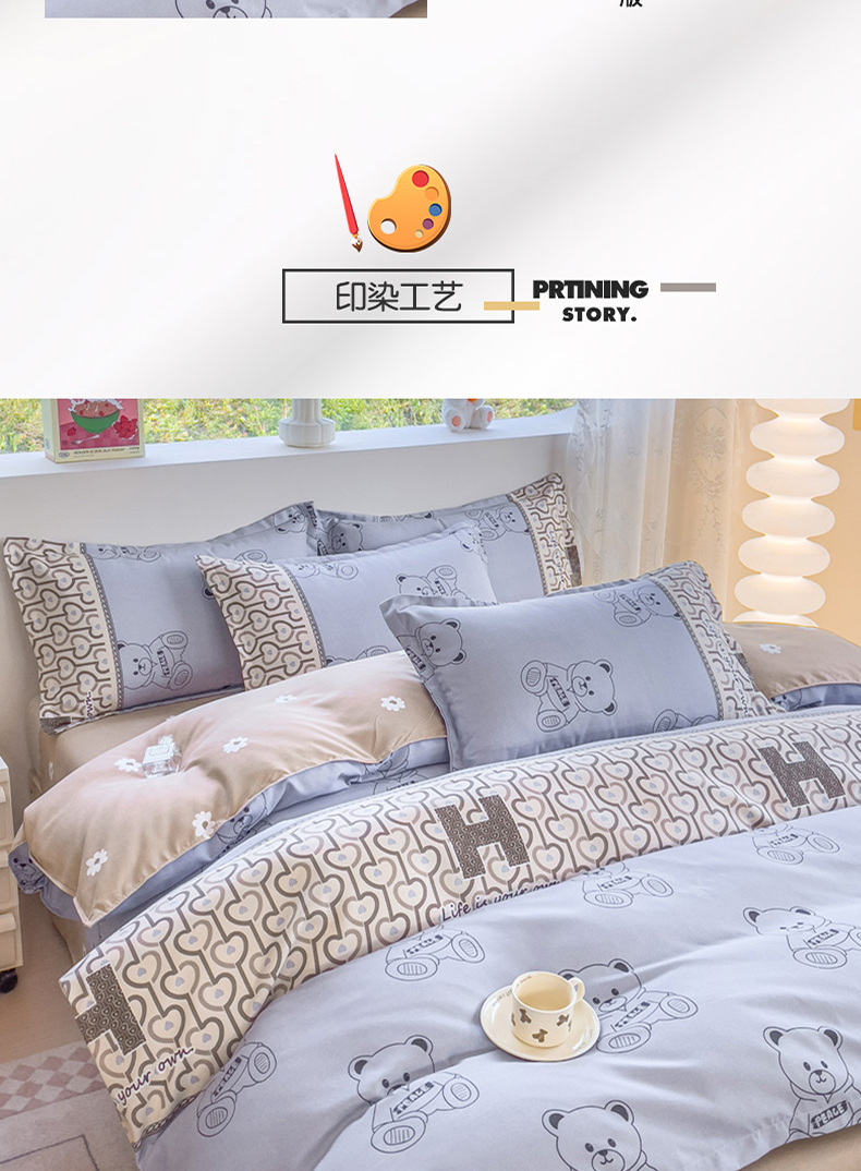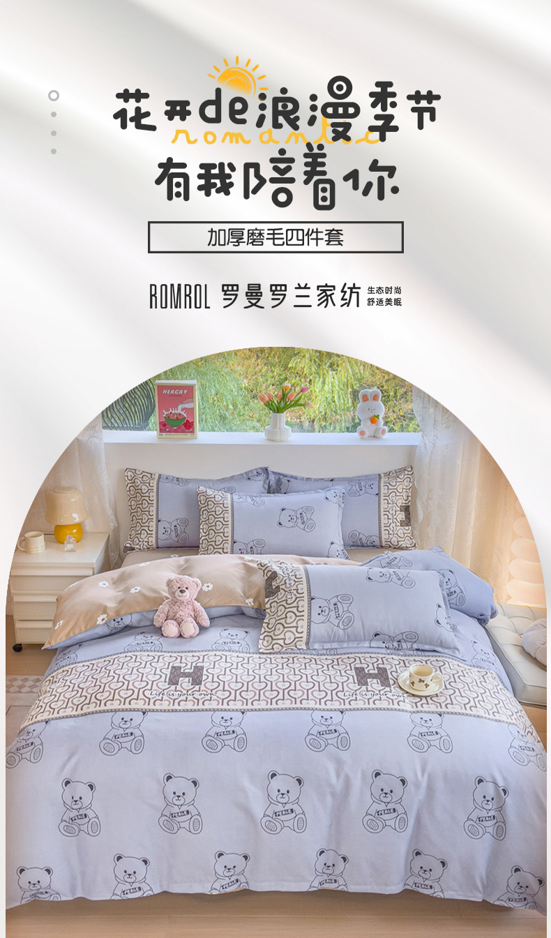 罗曼罗兰加厚磨毛印花四件套 嘟嘟熊