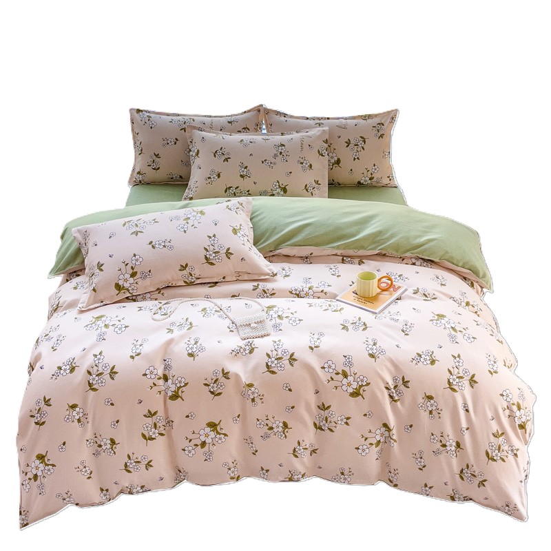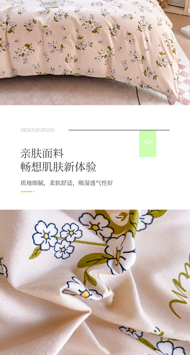 清新碎花森系风,浅粉底色配白色小花,搭配清新绿边,像把春日花园搬上床,营造治愈森系氛围,卧室秒变温馨小窝。"