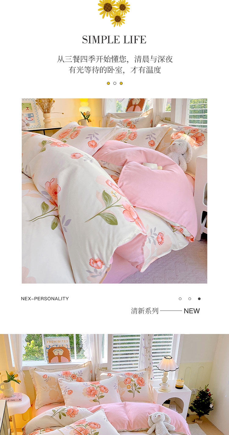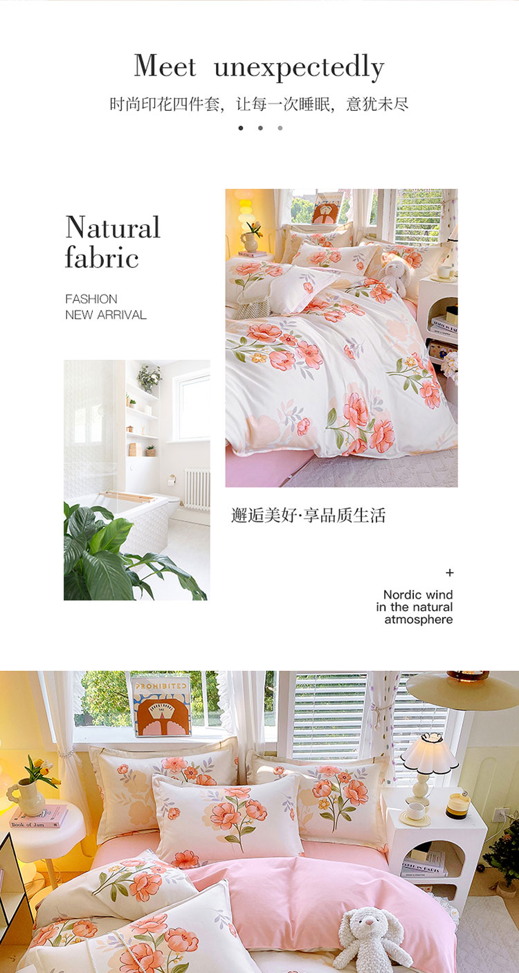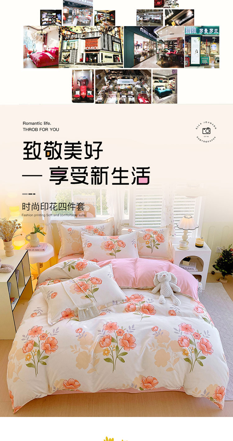 粉橘花朵铺满套件,配色柔和清新,自带田园浪漫感,铺上床瞬间点亮卧室,每天睁眼都是好心情。清新花色不挑家具风格,不管是简约风还是甜美风卧室,都能和谐融入,一键升级温馨感 。