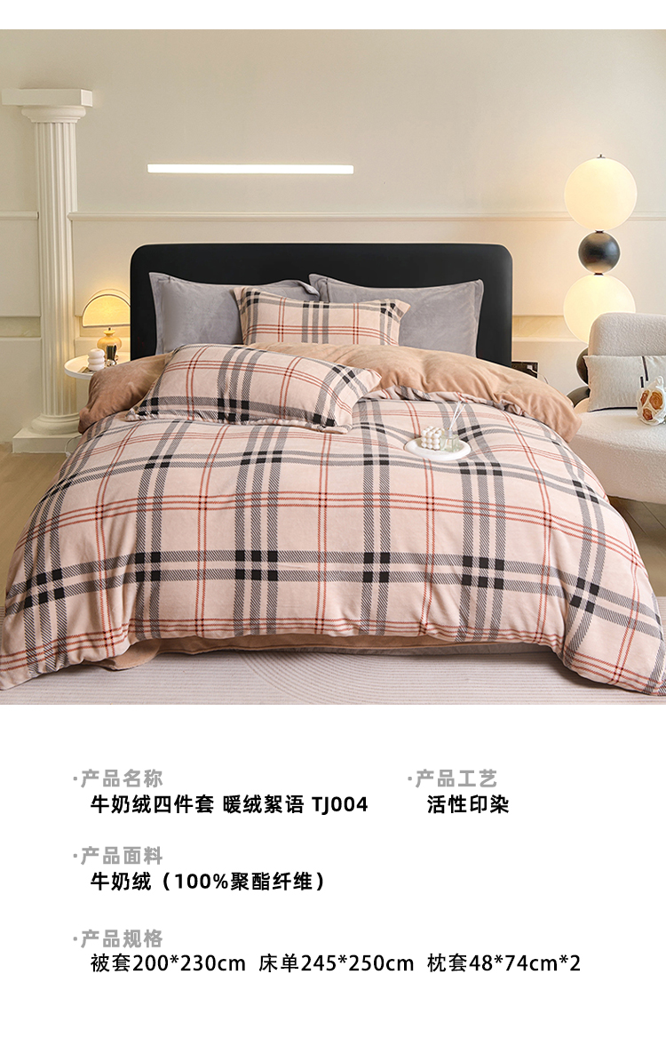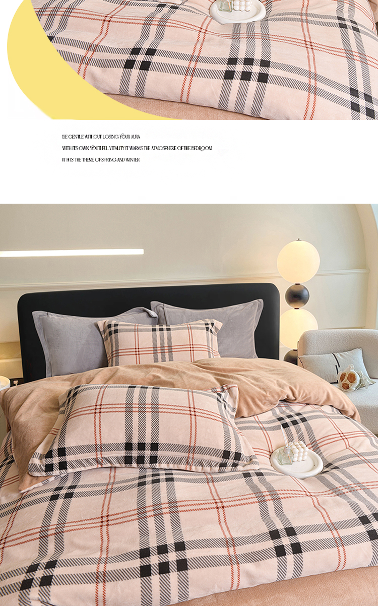 锁温黑科技:100%聚酯纤维+加厚拉绒工艺,形成密集保暖层,有效阻隔冷空气,整夜恒温不冰凉。经典拼色格纹(宝格丽经典色),复古与现代交融,轻松适配北欧、ins风卧室,视觉温暖感+50%。裸睡级触感:双面加密绒毛,柔软蓬松不扎肤,静电处理后贴身不粘毛,秋冬贴身更安心。