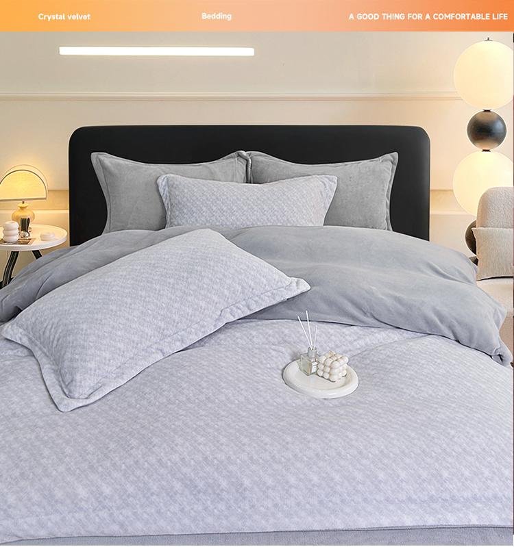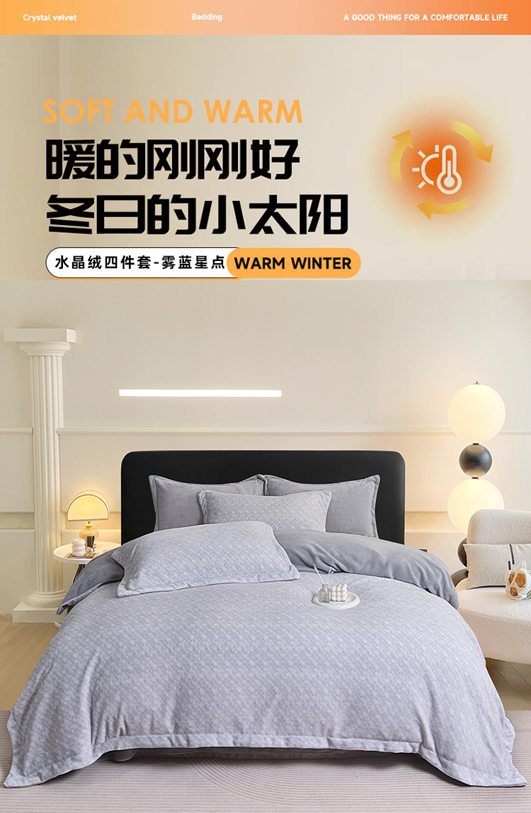 罗曼罗兰水晶绒四件套 雾蓝星点 TJ003