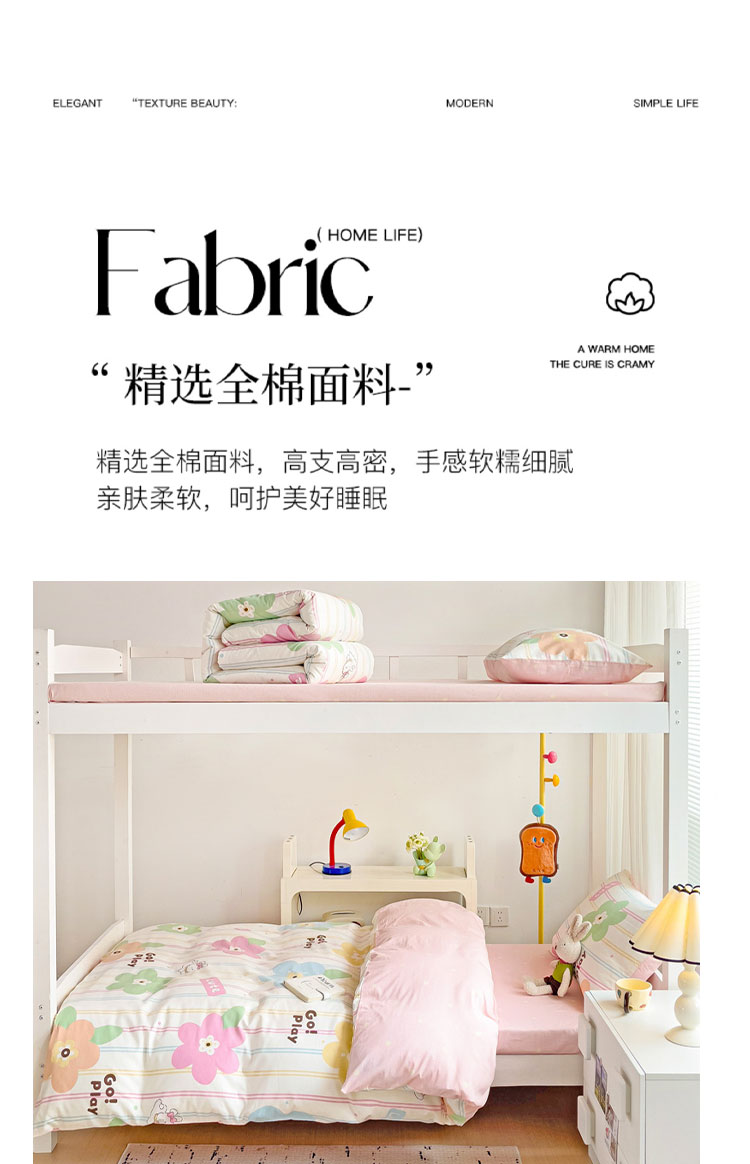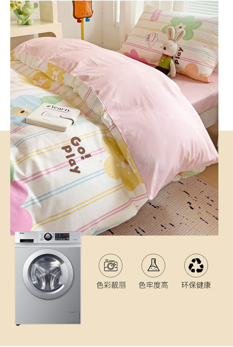 100%全棉材质,柔软透气,无化学添加,呵护宝宝娇嫩肌肤;卡通主题印花+鲜活色彩激发童趣,培养自主入睡习惯。隐形拉链、弹性包边等实用细节防移位,抗菌枕套守护呼吸健康。四季通用,机洗抗皱不褪色,高性价比省心省力!安全、舒适、趣味兼具,一套搞定儿童房萌化改造,守护宝宝甜美梦乡,宝妈育儿更轻松!
