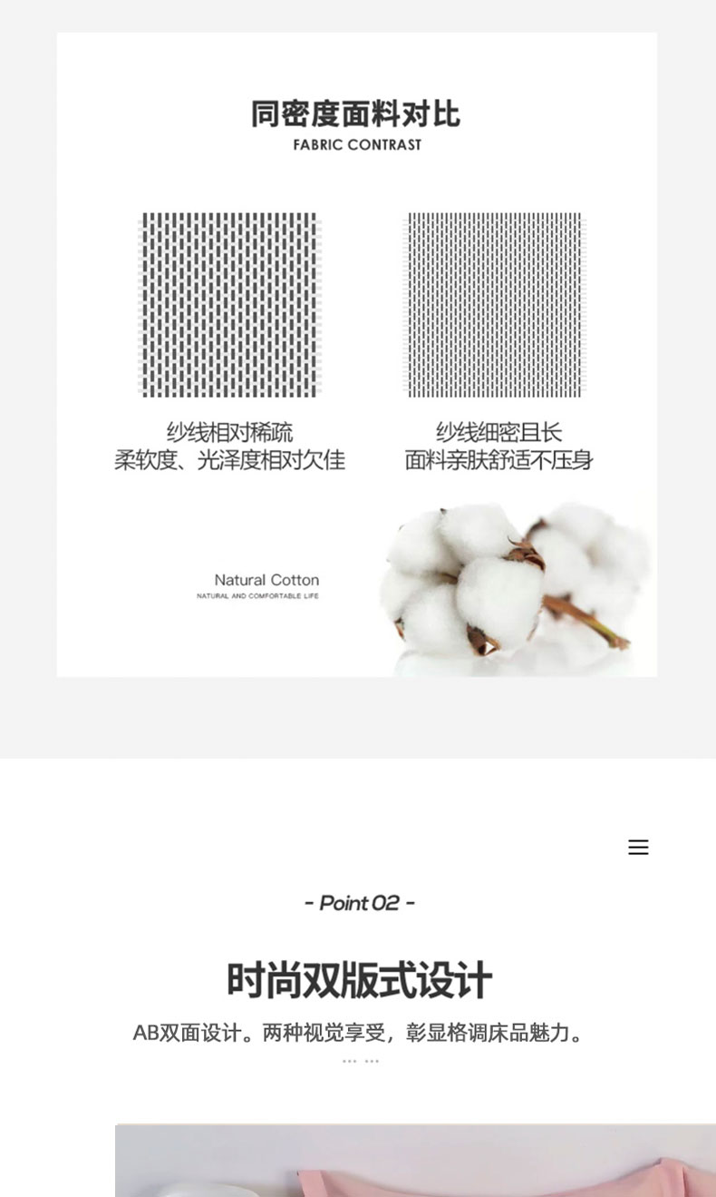 "100%全棉材质,阳光全棉,40支纱倾心织造,触感柔软舒适,体感细腻亲肤 ,透气性优越,美观耐用,深受人们的喜爱。