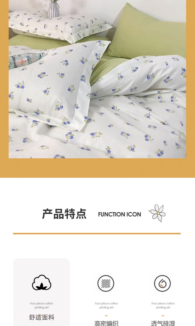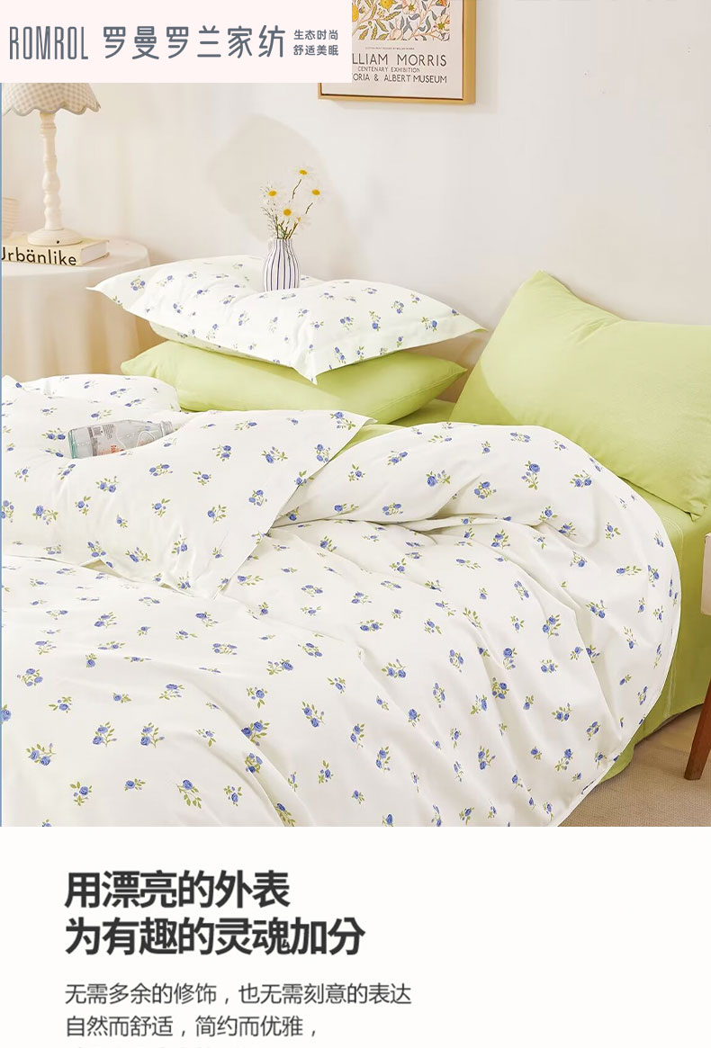 罗曼罗兰全棉四件套 淡妆初夏 蓝-4