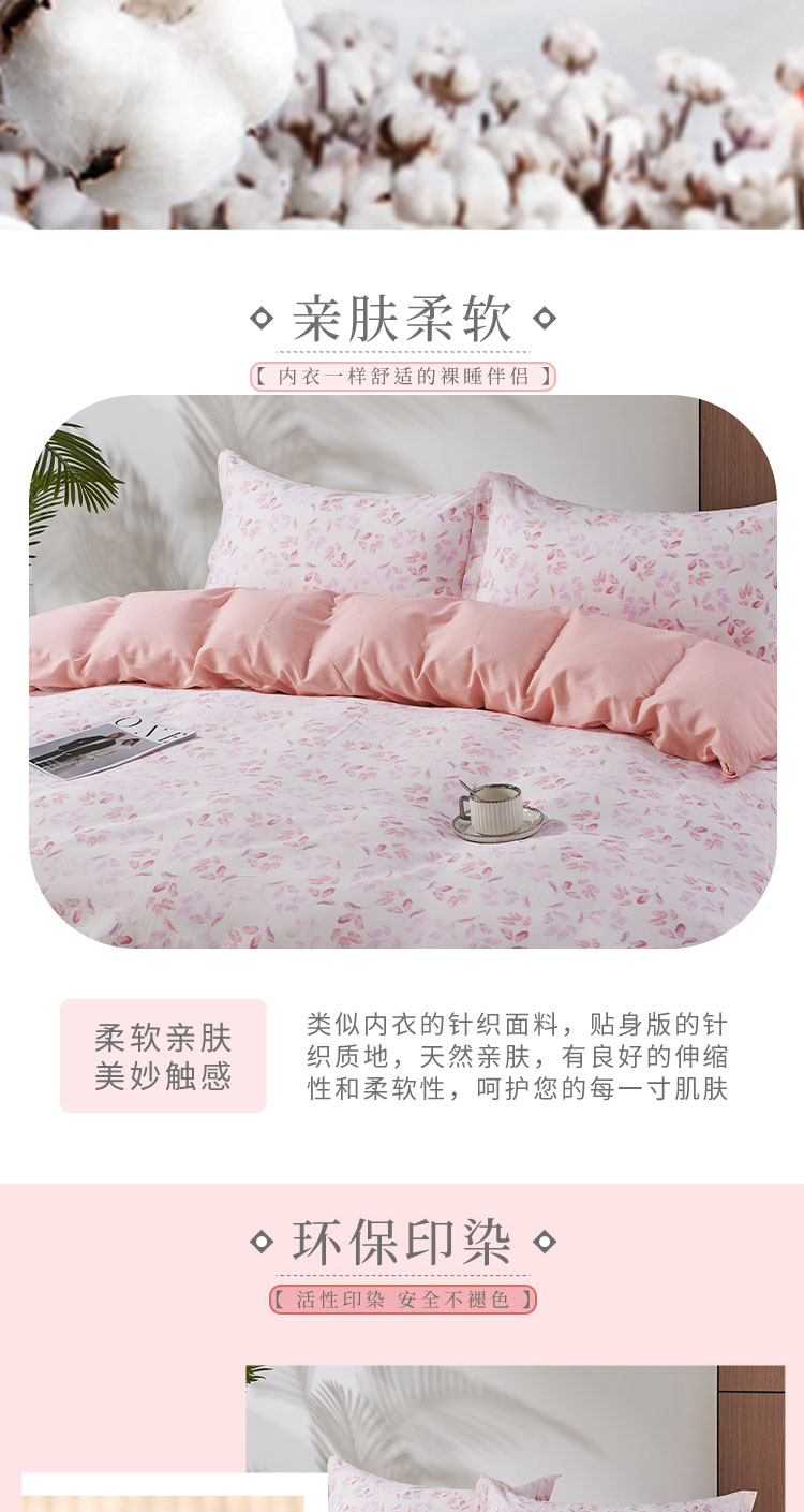 "100%全棉材质,阳光全棉,40支纱倾心织造,触感柔软舒适,体感细腻亲肤 ,透气性优越,美观耐用,深受人们的喜爱。