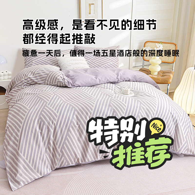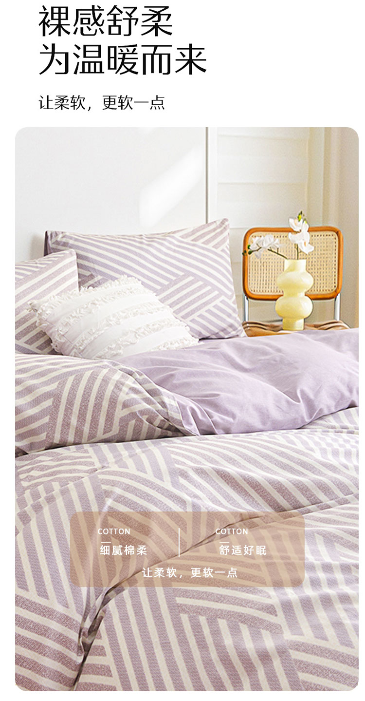 100%全棉四件套, 咖灰几何条纹交织出简约现代感。全棉面料透气亲肤,裹住肌肤的每一刻都满是自然柔润;低饱和配色+利落线条,适配极简、侘寂等家居风格,铺床即造高级氛围感,用纯棉的温柔与设计感,为睡眠注入松弛格调 。