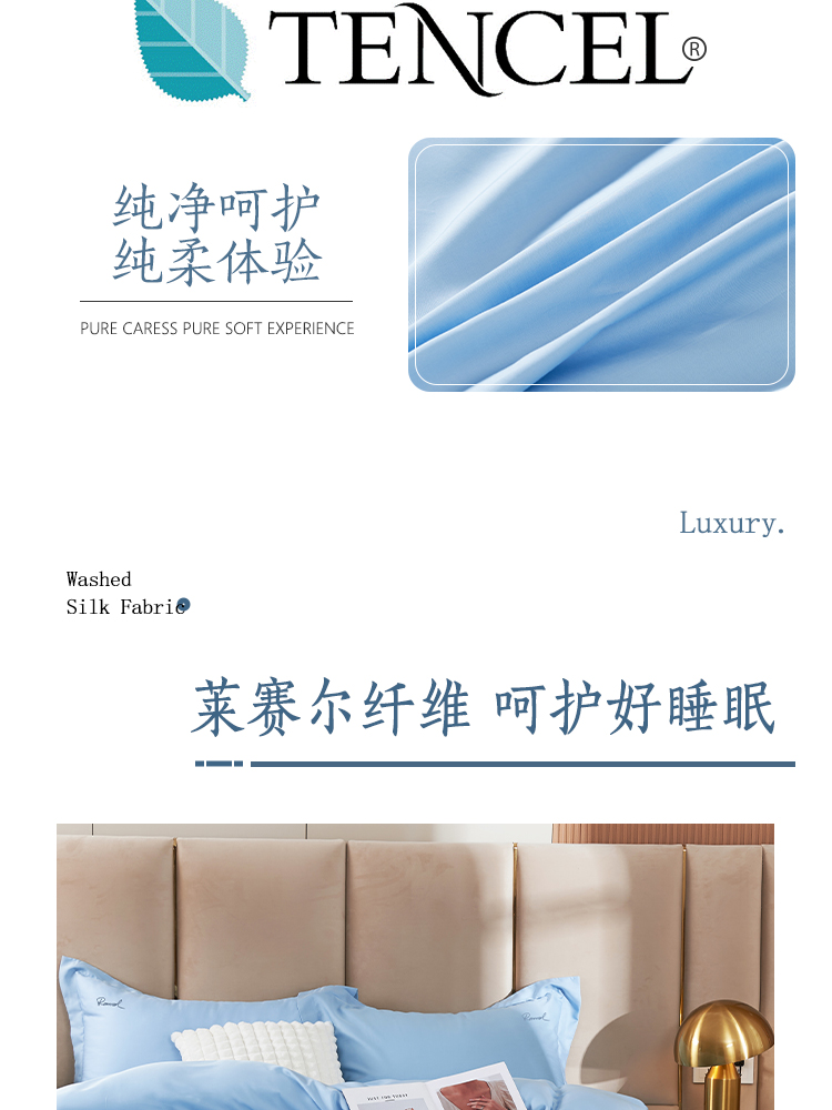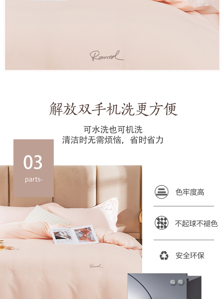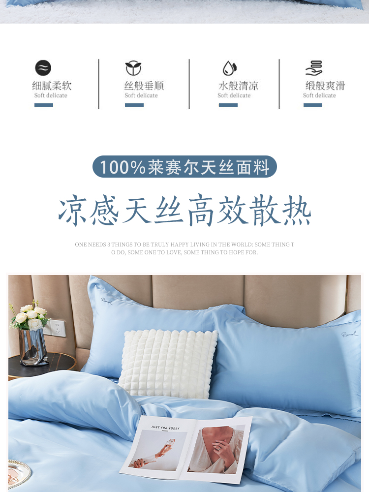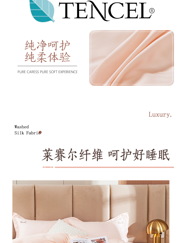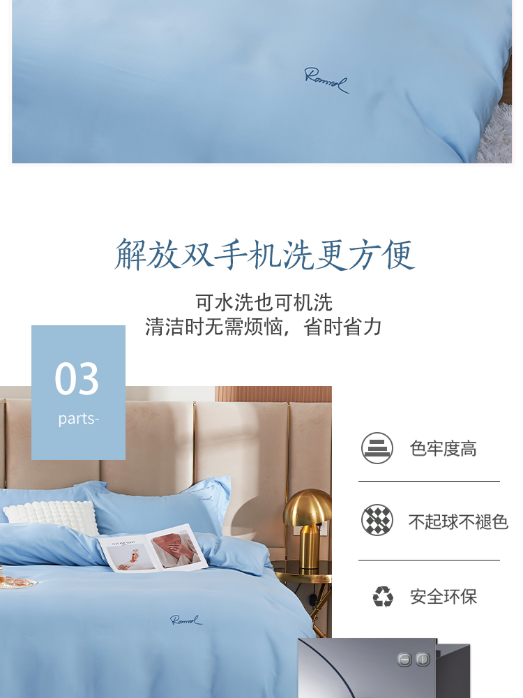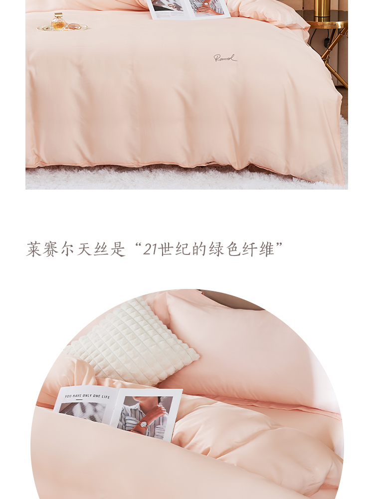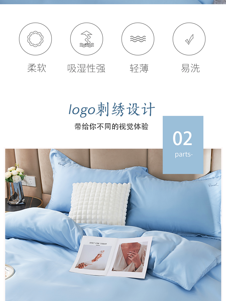 莱赛尔面料,触感柔滑舒适,让您感受家的温馨与舒适。每一处细节,都流露出对品质的执着追求。为您的卧室增添一份别致韵味,纯色简约时尚被套枕套,时尚绣花logo图案,天丝四件套,让您拥有一个温馨、舒适的睡眠环境。