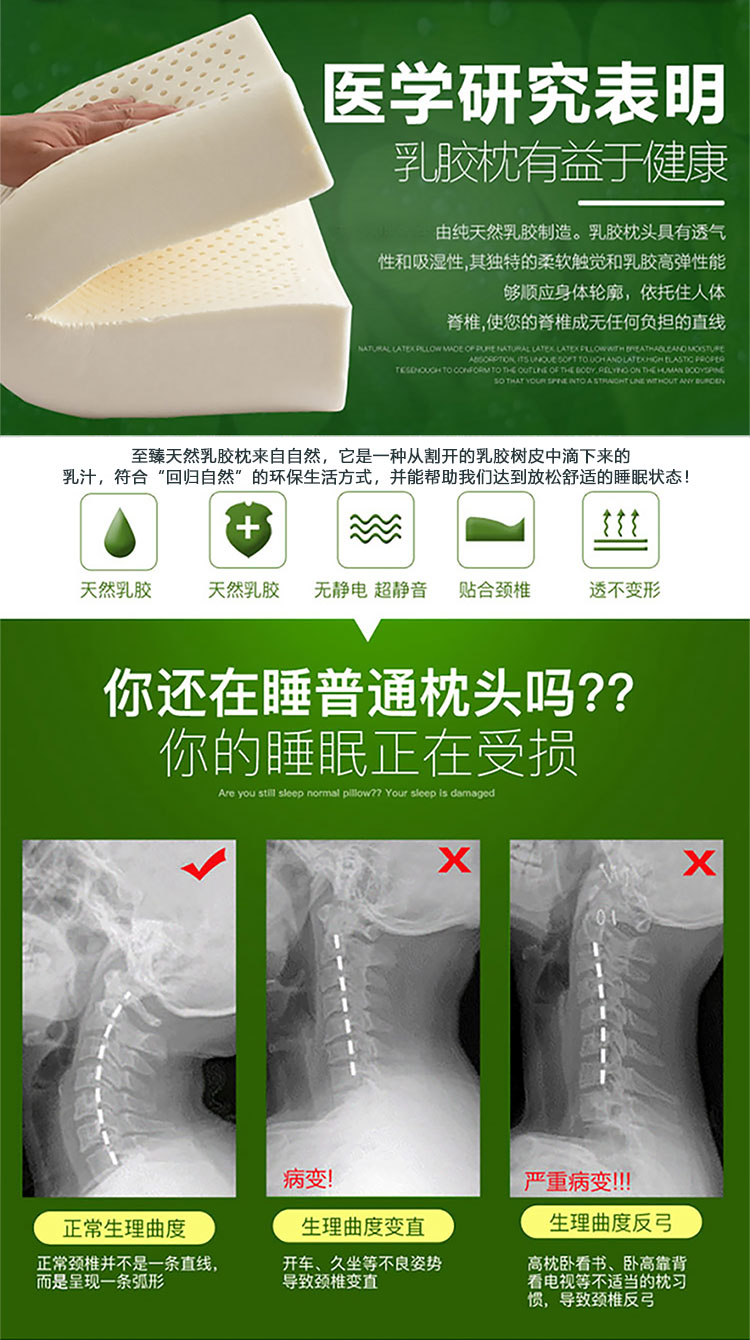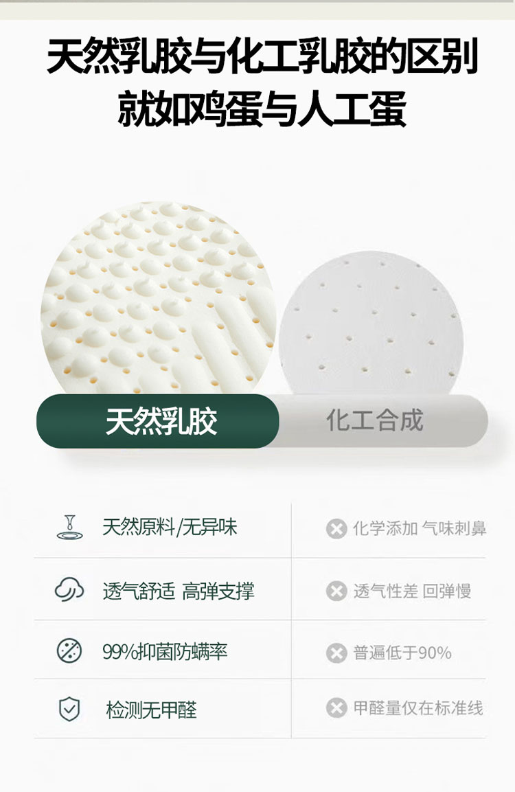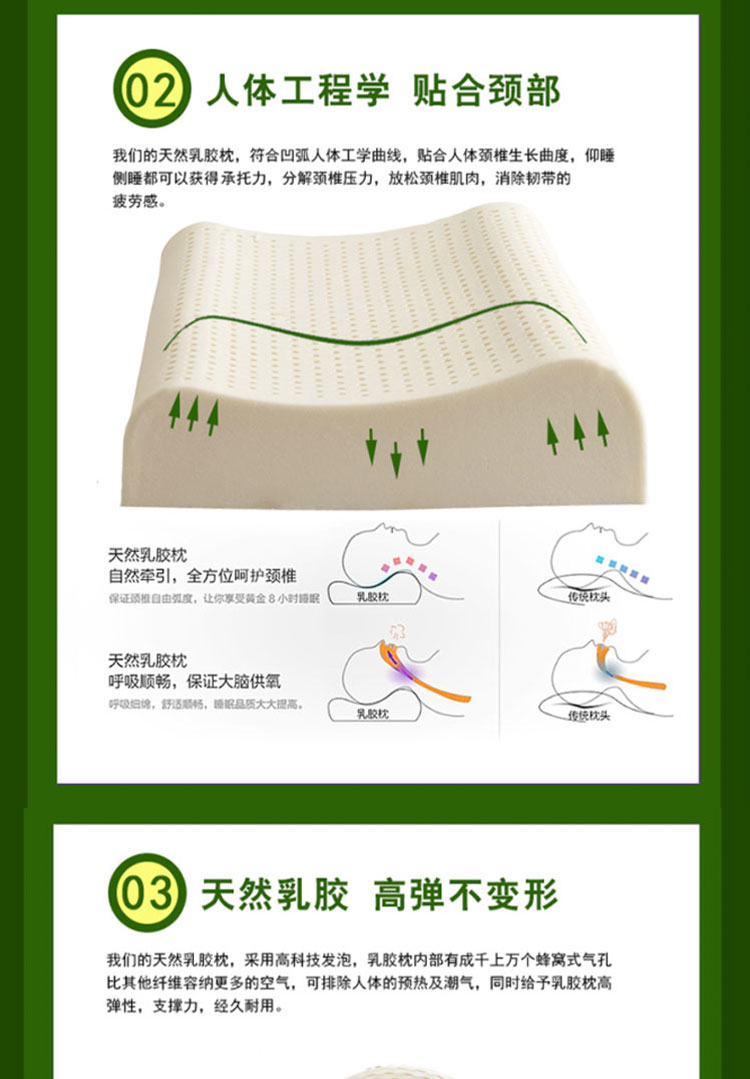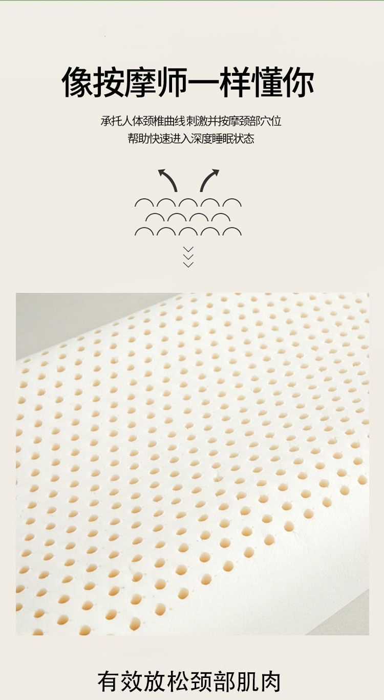 柔弹兼备细腻舒适,45D黄金密度更贴合亚洲人的颈椎,使用泰国原产天然乳胶,天然原料/无异味,透气舒适 高弹支撑,99%抑菌防螨率,检测无甲醛,高密度天然乳胶承托人体颈椎曲线,帮助快速进入深度睡眠状态
