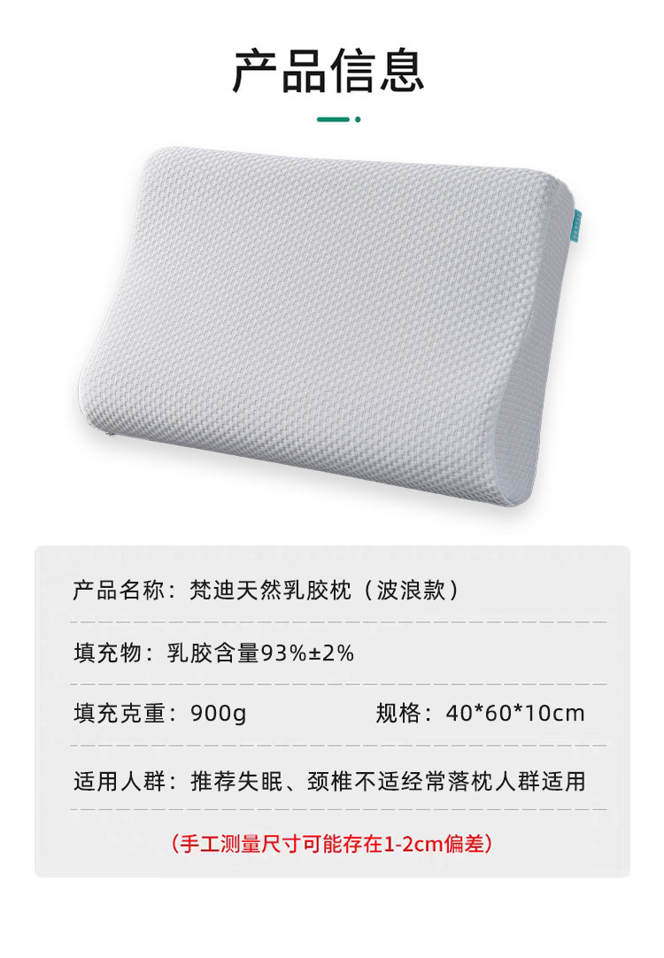 罗曼罗兰梵迪天然乳胶枕(波浪款)40*60*10cm