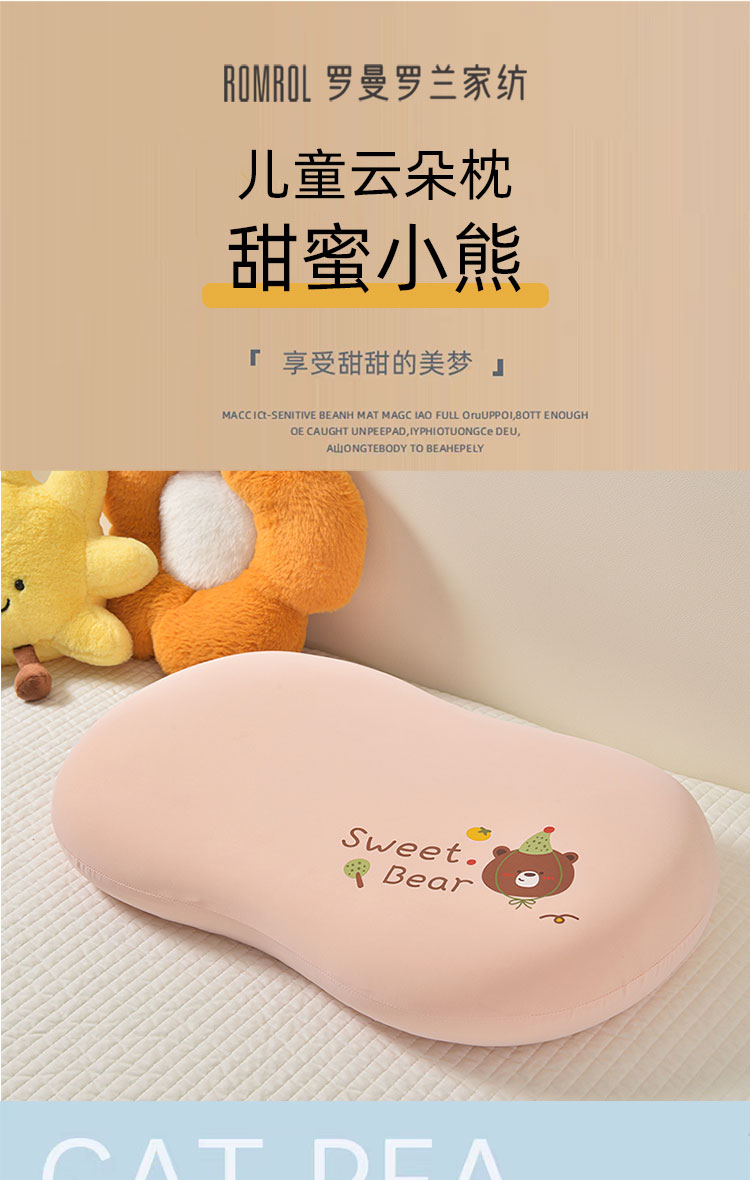 "儿童云朵枕,专为宝贝打造云端睡眠体验!采用柔软亲肤的材质,云朵般蓬松触感,贴合儿童颈椎曲线,呵护成长发育。