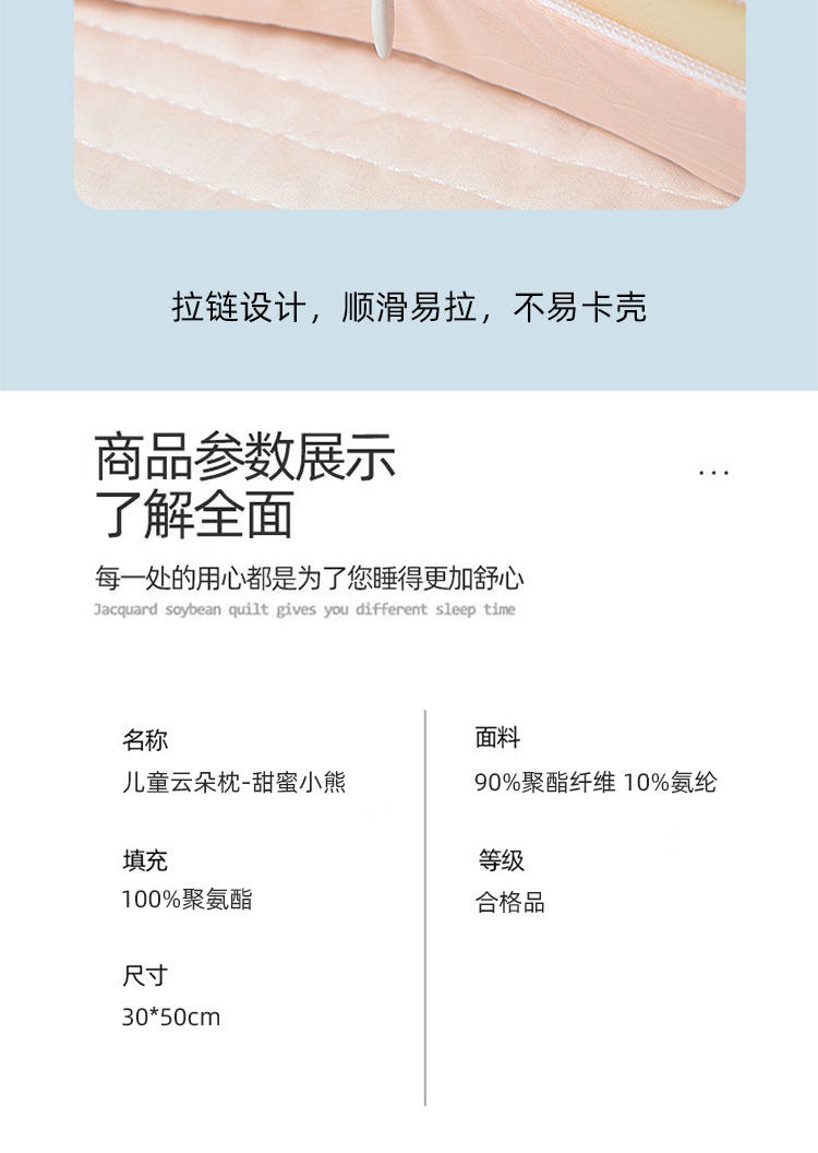 环保材质无异味,抗菌防螨,妈妈更安心。耐用不变形。让孩子每晚在温柔“云朵”中安然入睡,醒来元气满满!"