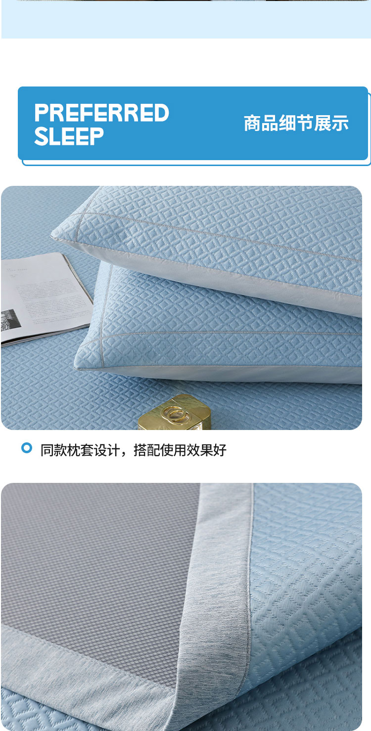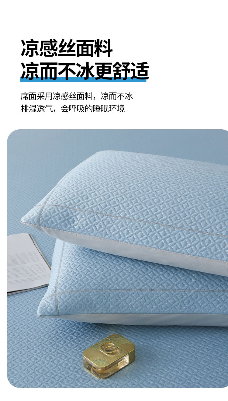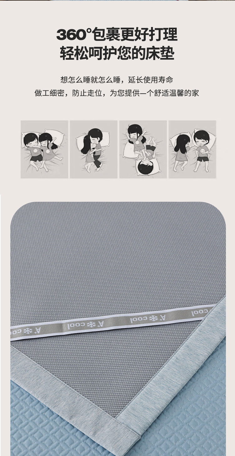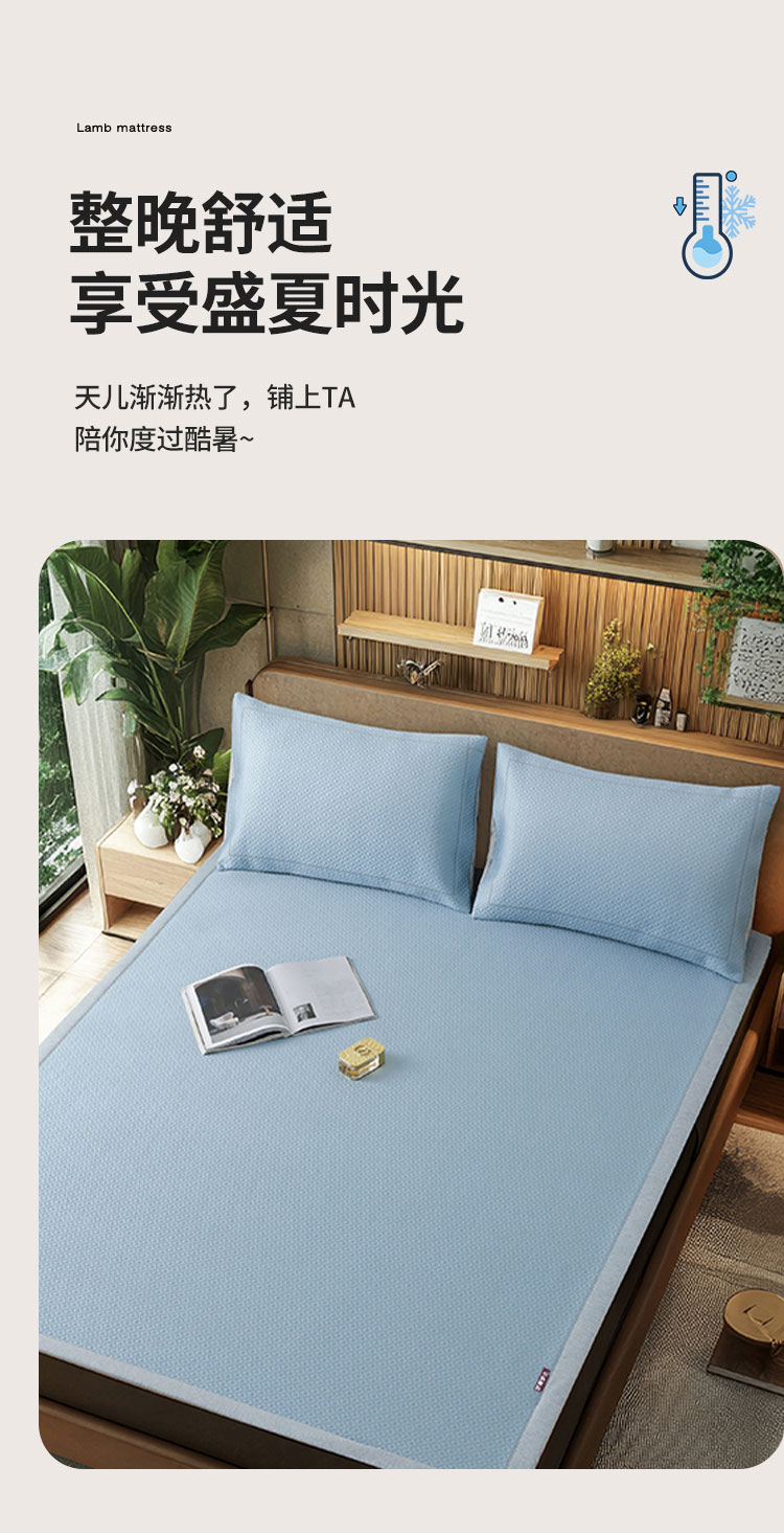 3秒触感降温,凉而不冰:采用高密度冰丝纤维与清凉因子科技,接触瞬间体感温度直降3-5℃,如薄荷清风拂过肌肤,持续散热8小时,整夜舒爽不闷热,空调房搭配使用更省电!