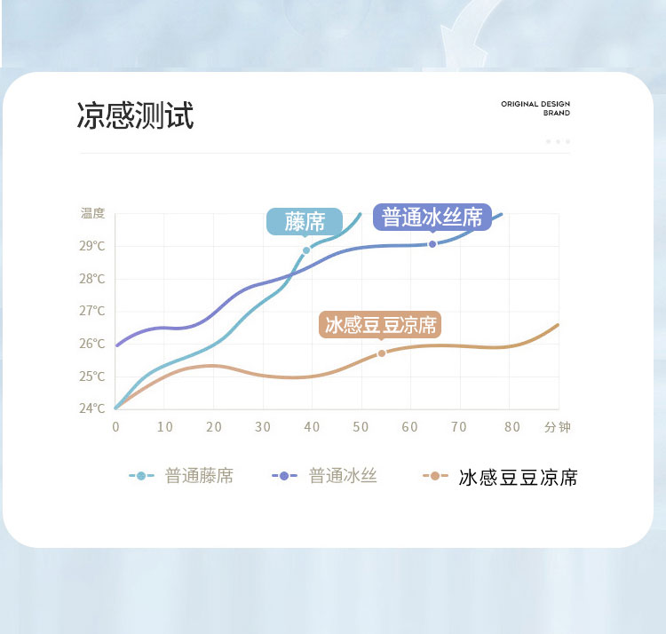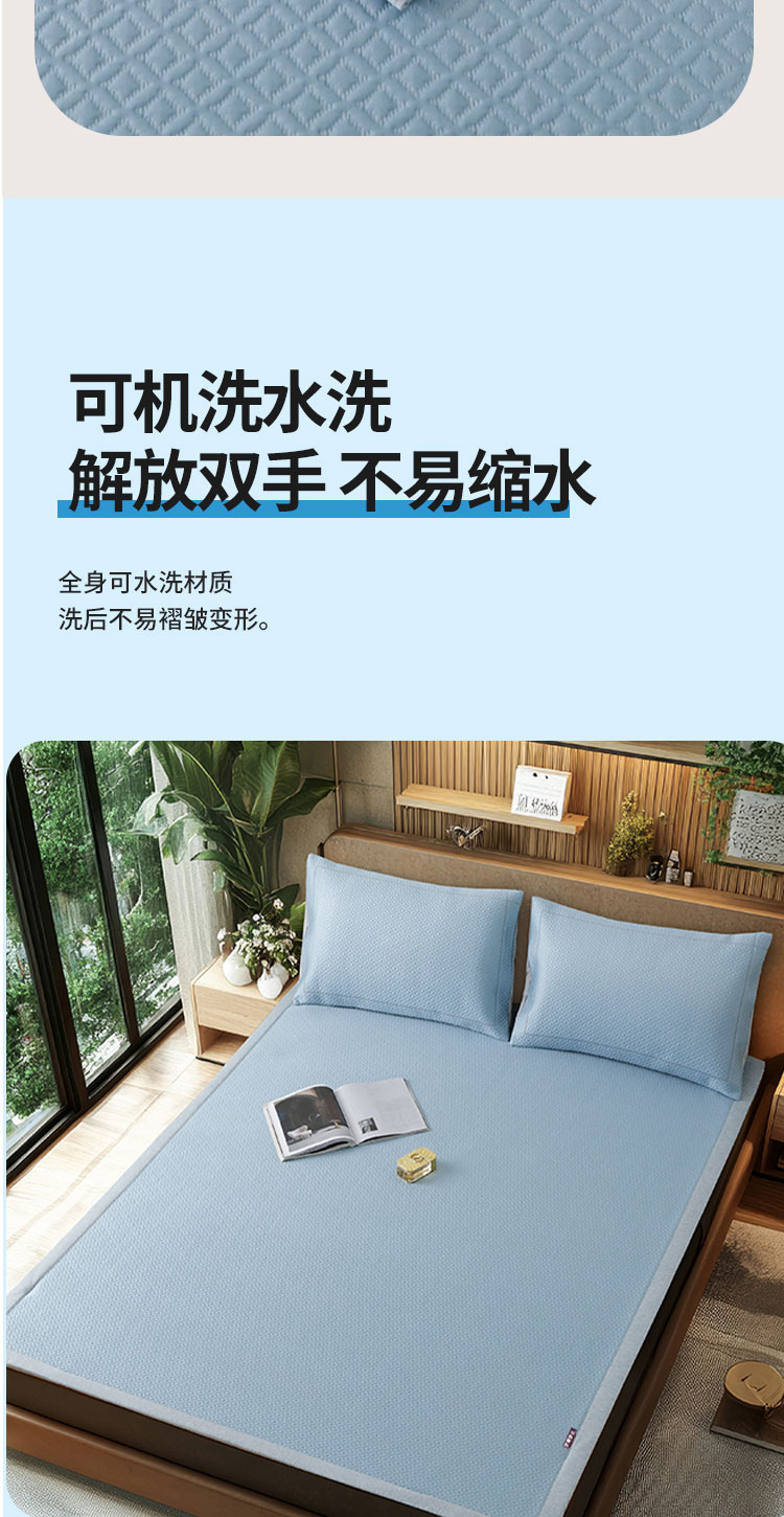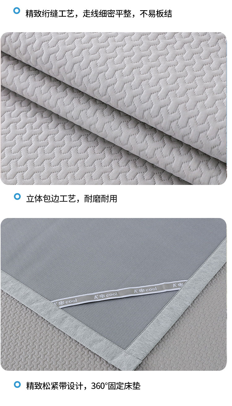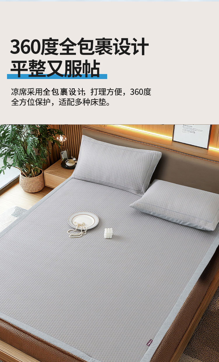 3秒触感降温,凉而不冰:采用高密度冰丝纤维与清凉因子科技,接触瞬间体感温度直降3-5℃,如薄荷清风拂过肌肤,持续散热8小时,整夜舒爽不闷热,空调房搭配使用更省电!
