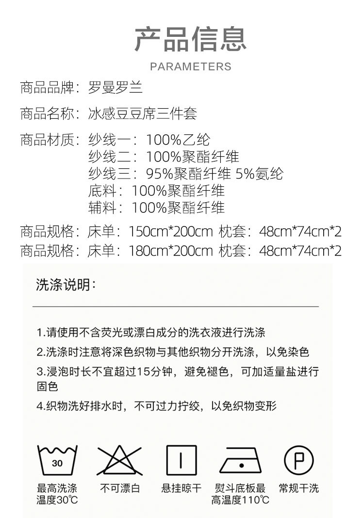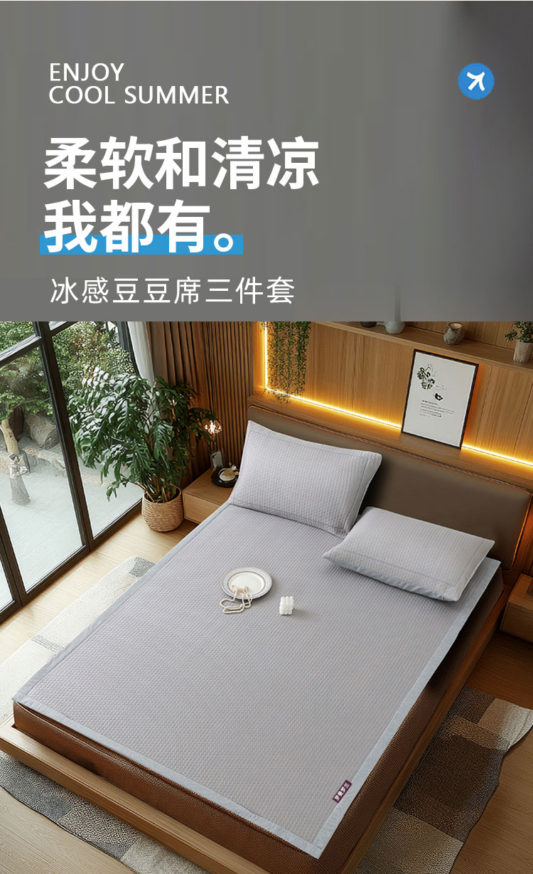 罗曼罗兰冰感豆豆席三件套