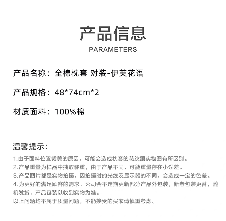罗曼罗兰全棉枕套 对装 伊芙花语