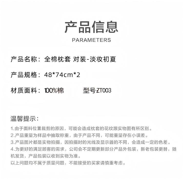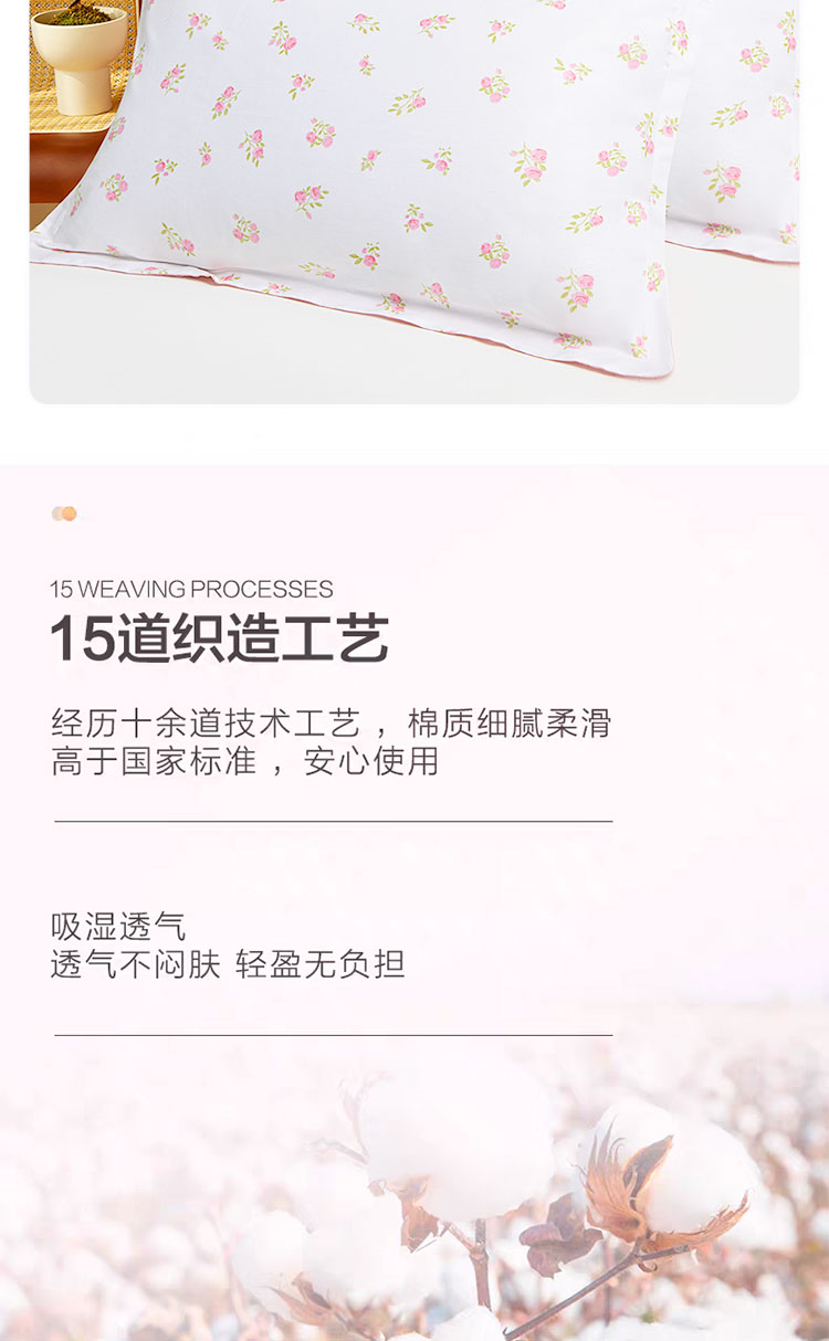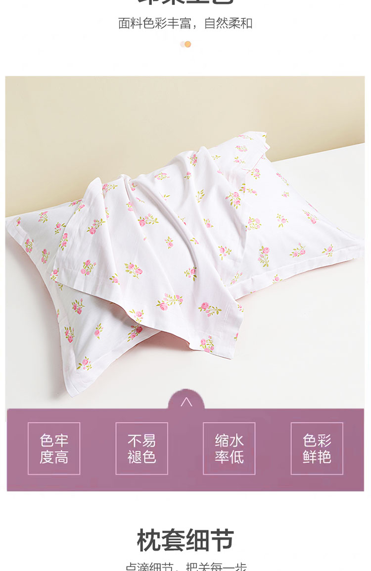 罗曼罗兰全棉枕套 对装 淡妆初夏