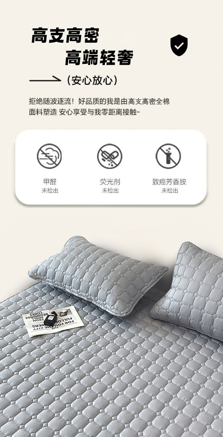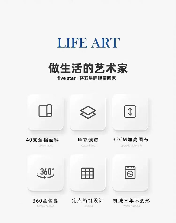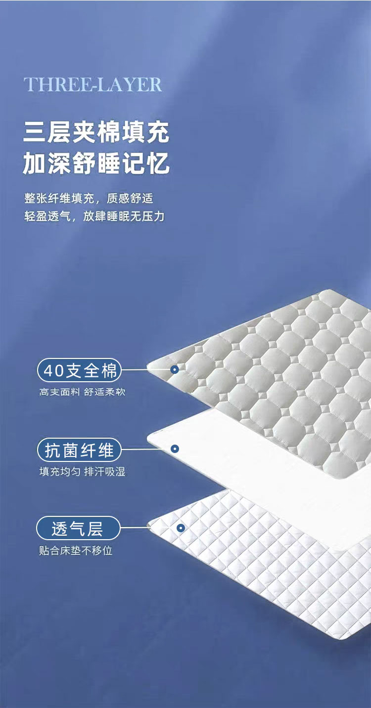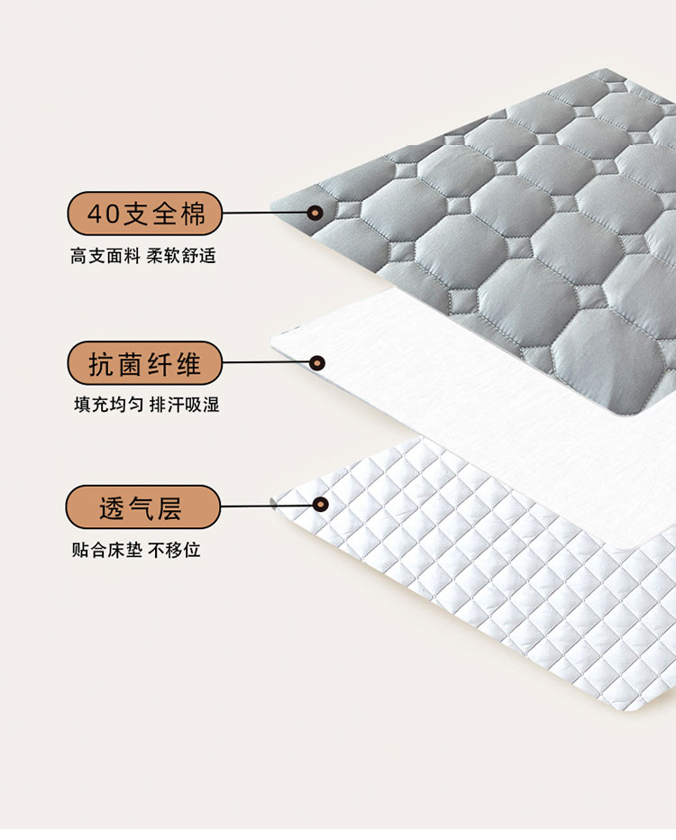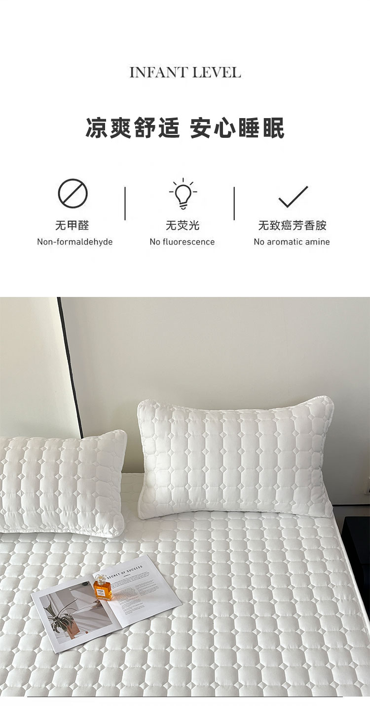 采用优质全棉面料,触感柔软细腻,亲肤性极佳,可抑制螨虫滋生,对敏感肌肤友好。天然棉材质透气吸汗,能保持睡眠环境干爽,避免闷热潮湿,提升睡眠舒适度。床笠式360°全包围设计,整圈松紧带包裹,稳固不移位,有效阻挡灰尘、污渍、油渍等侵入床垫,日常的饮品泼洒、灰尘堆积都能被床笠隔离,减少床垫清洁负担。32厘米加高床围,适用绝大多数床垫,轻松包裹无压力。